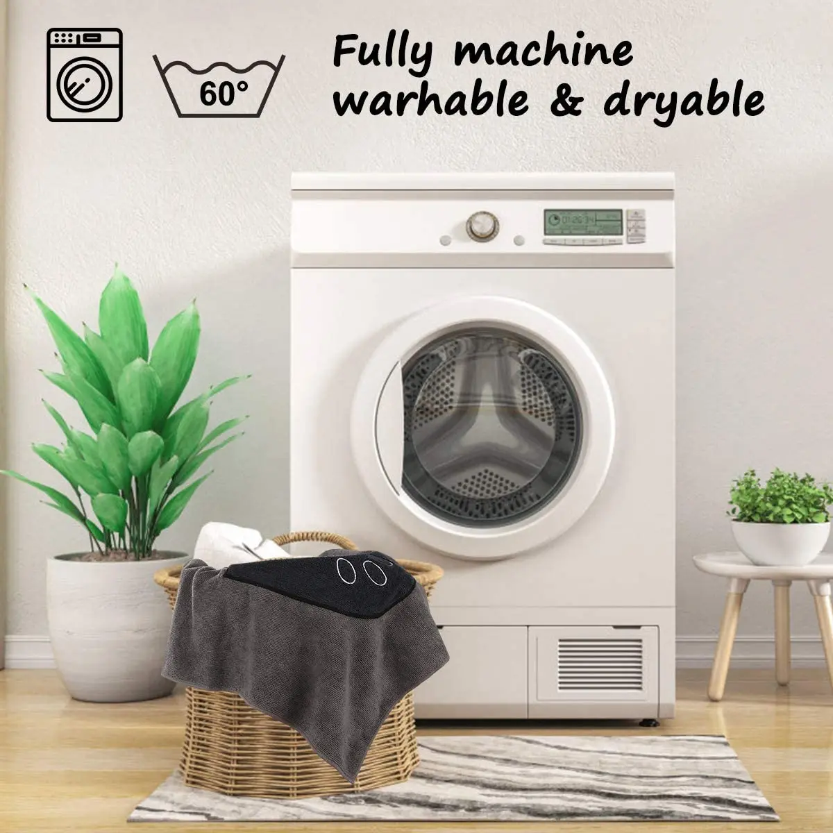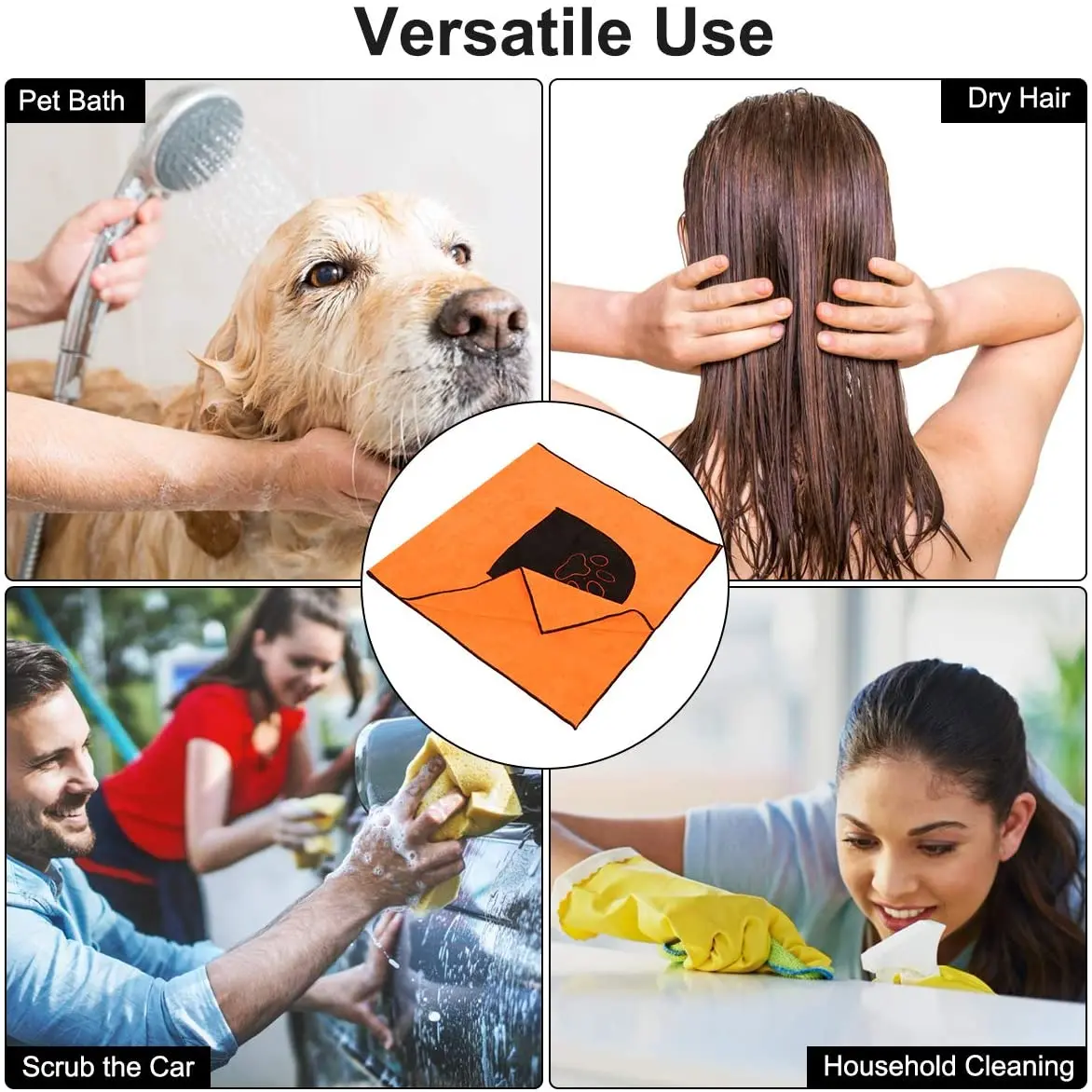 Дизайн с двумя ручными карманами обеспечивает лучшее сцепление для сушки ног и живота вашей собаки, в то время как материал ткани мягко массирует и направляет воду из пудры.
