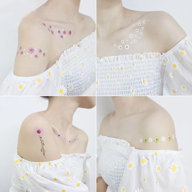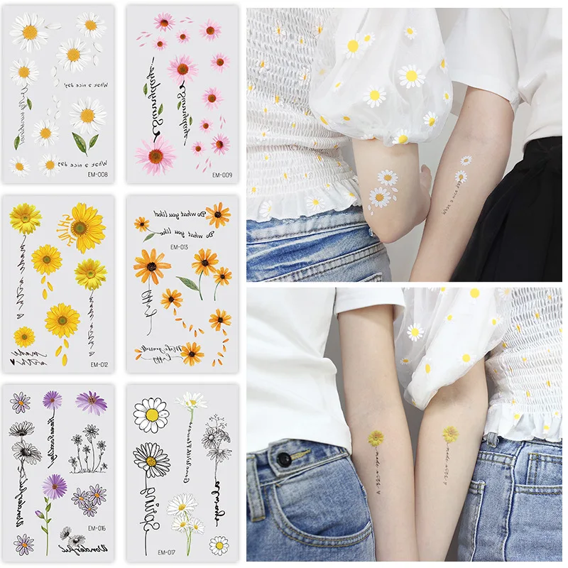 Малые маргаритки, искусственные татуировки, наклейки на лицо, руки, ноги для детей, мужчин, женский боди-арт, водонепроницаемые татуировки с цветами, 120*75 мм, наклейки 2021