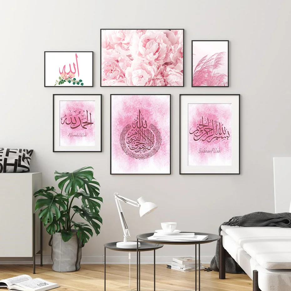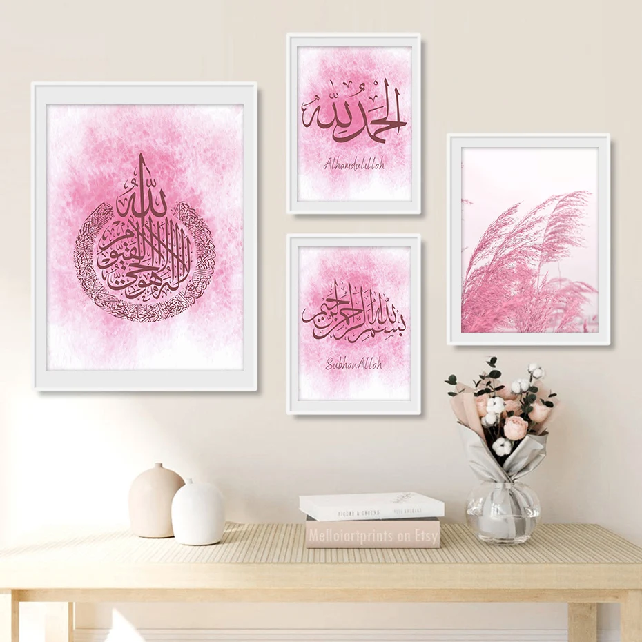 Плакаты и принты для спальни, розовые, аятул КУРСИ, исламские насте...