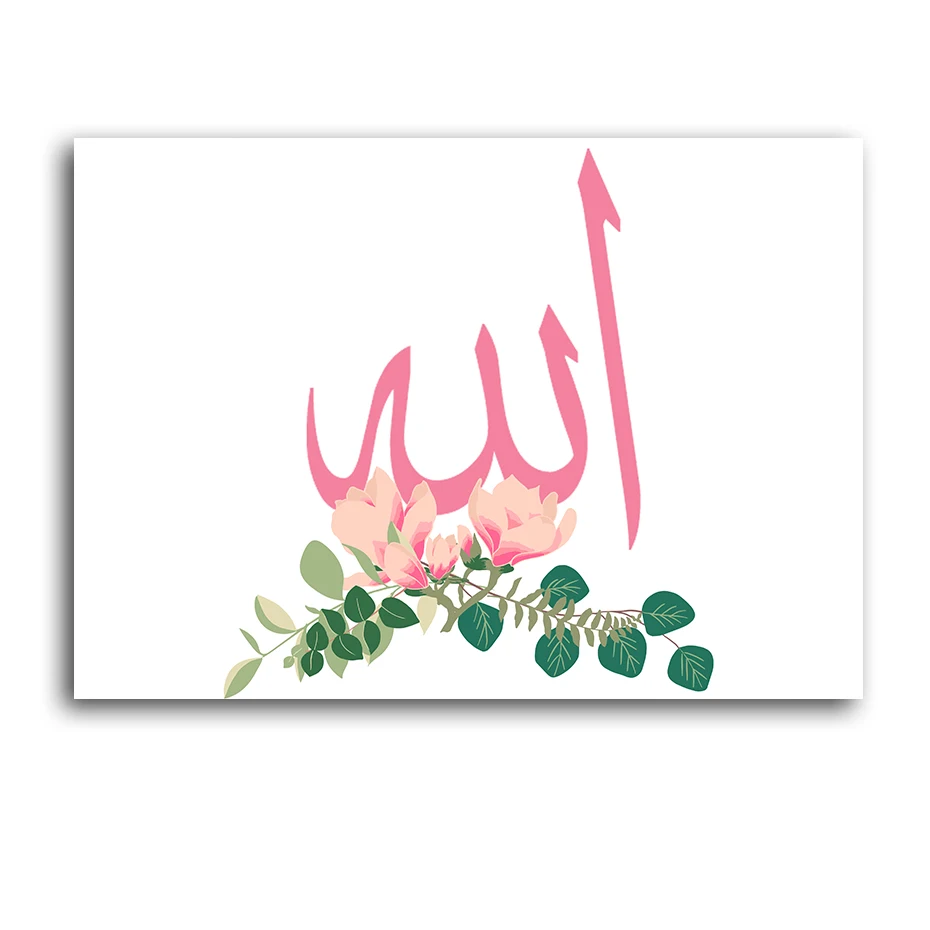 Зеленый лист розовый цветок Исламская каллиграфия настенная живопис...