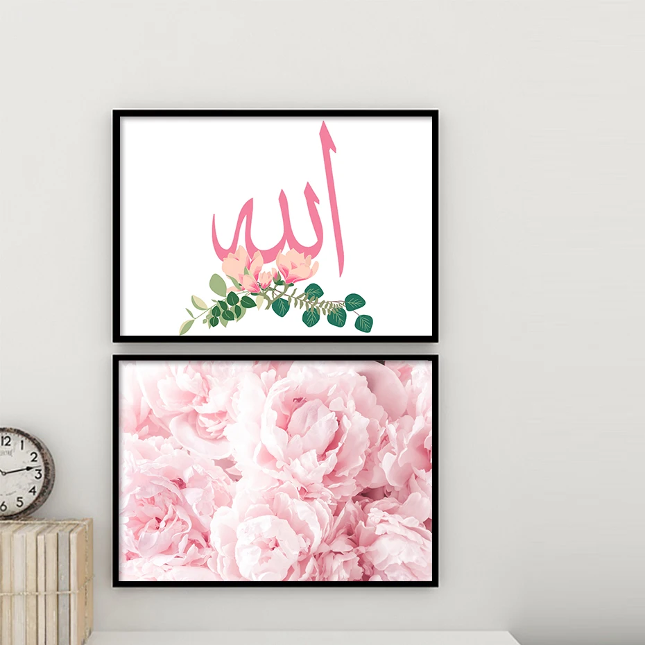 Цветок Арабская каллиграфия Исламская стена искусство Печать холст ...