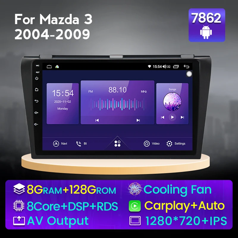Автомобильный радиоприемник 8G 128G Android 11 BT, видеомультимедийный плеер, навигация GPS для Mazda 3 bk 2004 2005 2006 2007 2008-2013 2 DIN без dvd