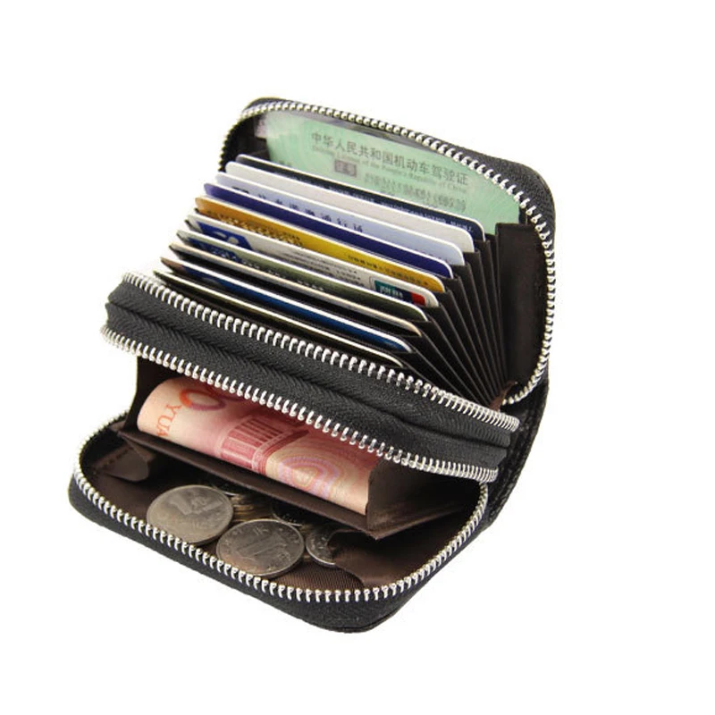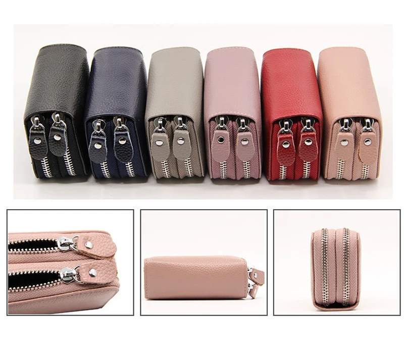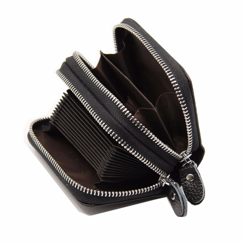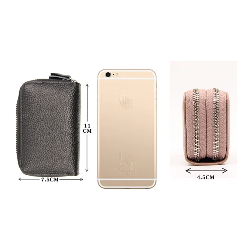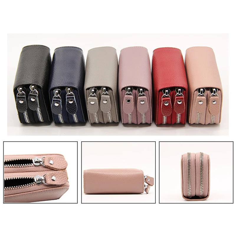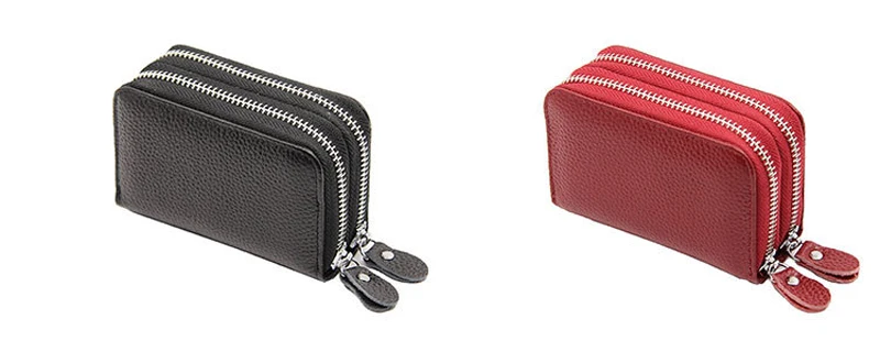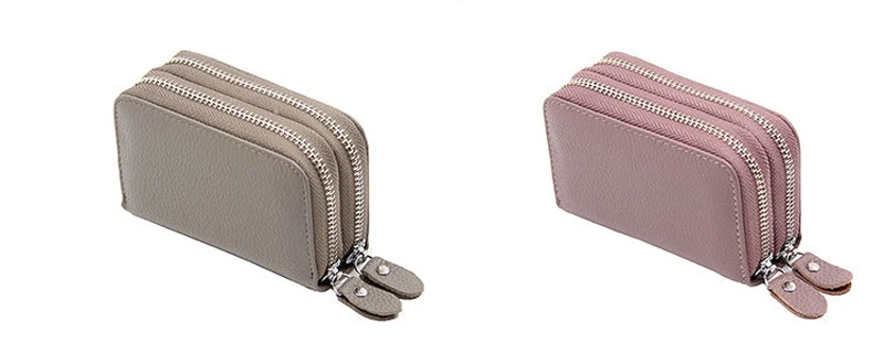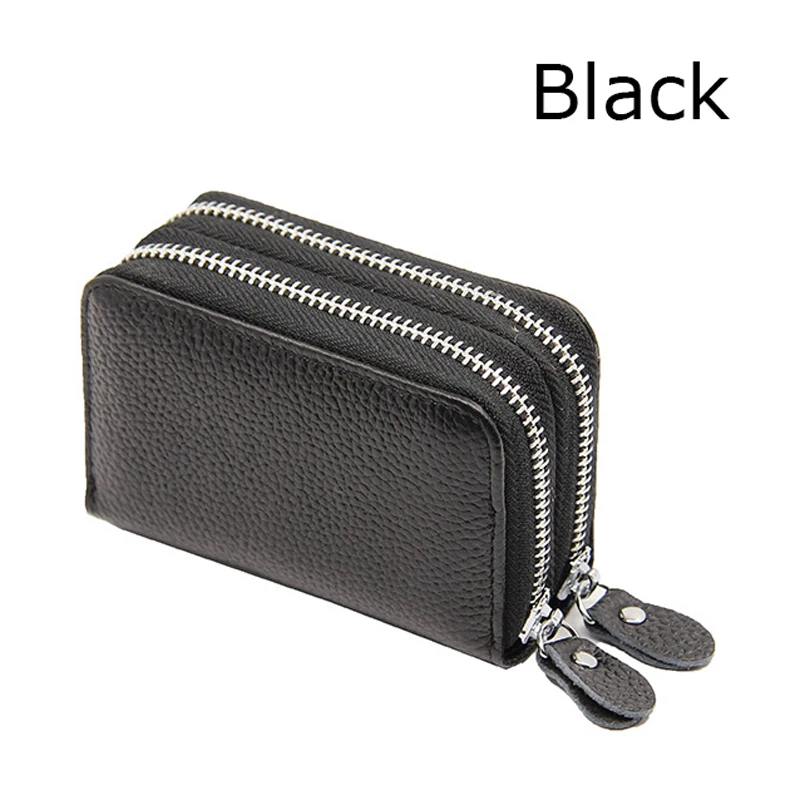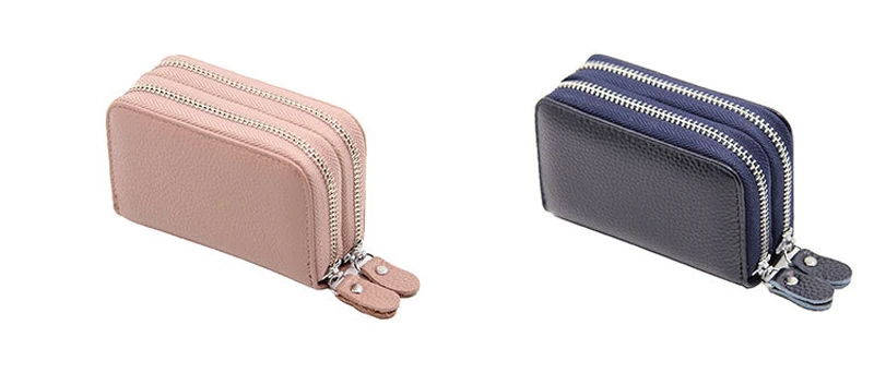 YUECIMIE бумажник для карт из натуральной кожи, кошелек для монет, Дамский держатель для кредитных карт с двойной молнией, Женский держатель для визитных карт, RFID, синий, черный