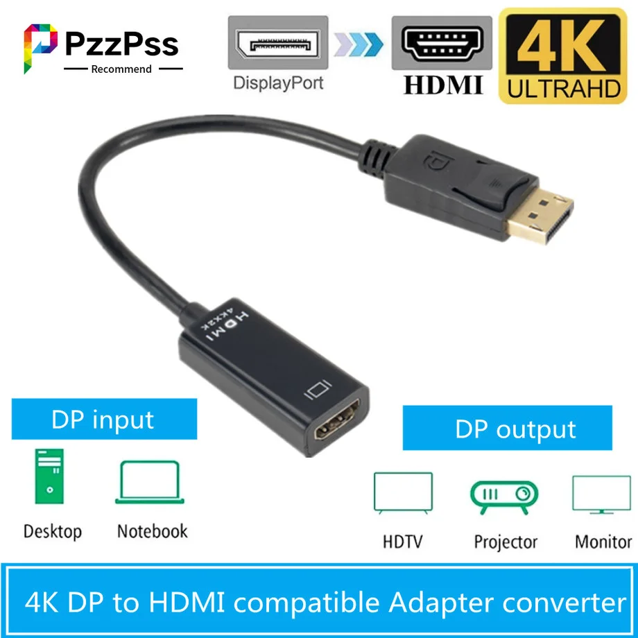 PzzPss 4K * 2K DP To HDMI-совместимый кабель-адаптер для разъема DisplayPort для ПК ТВ мини-проектора телевизионного монитора Projetor