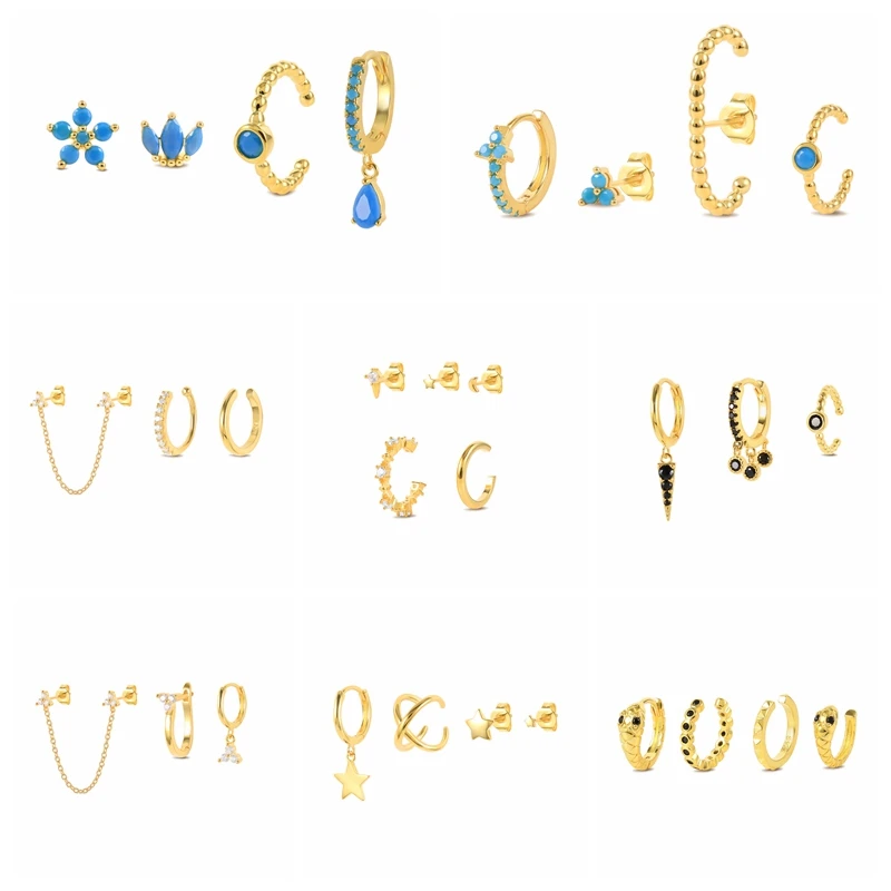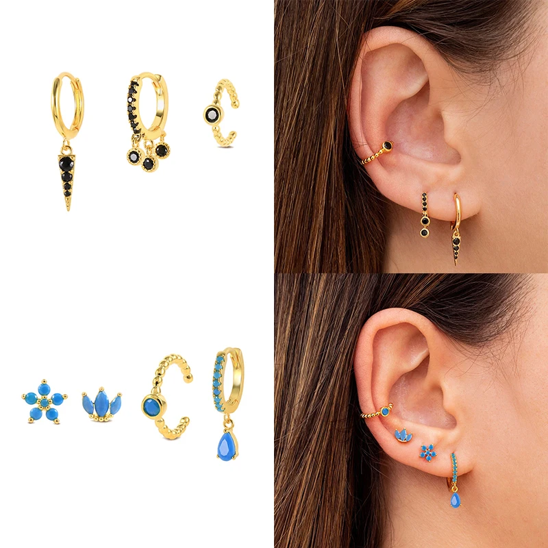Серьги с серебряным покрытием MC для девушек женщин 3 4 5 шт.компл. Изящные синие серьги с 925 штампами модное расположение серьги