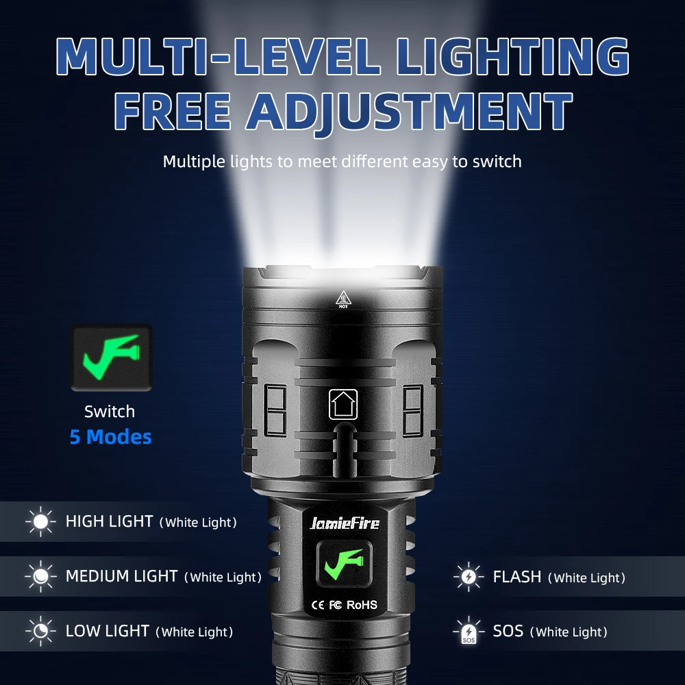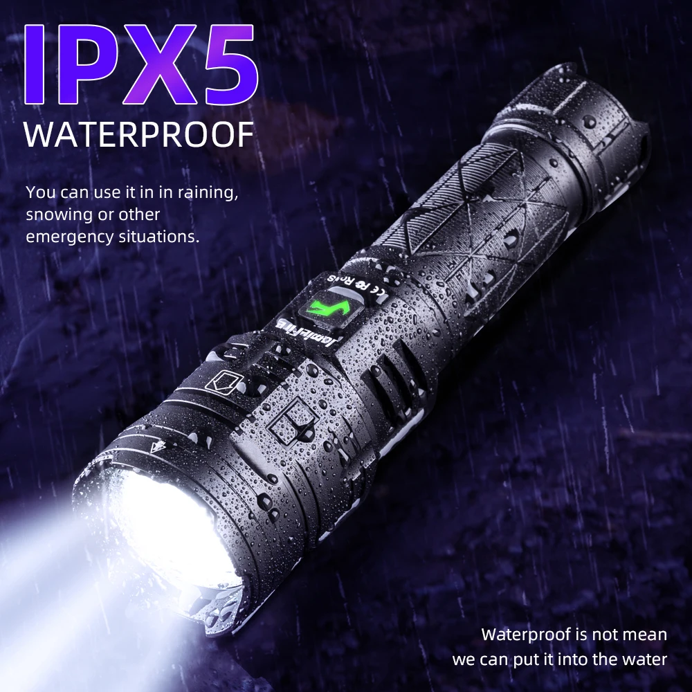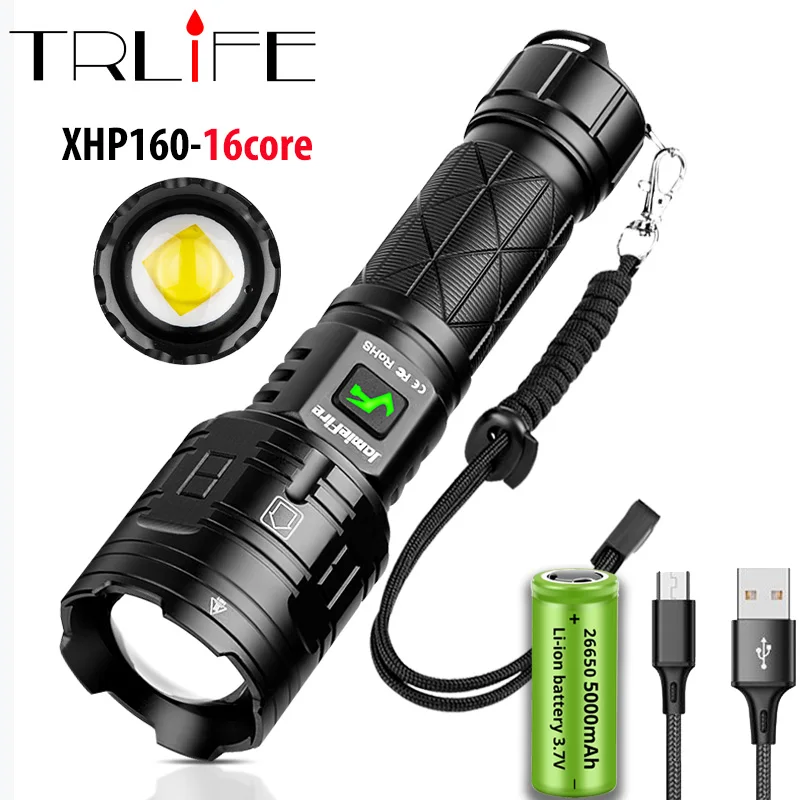 Действительно светодиодный фонарик XHP160-16 ядер, мощный яркий Перезаряжаемый тактический фонарик, масштабируемый водонепроницаемый уличный светильник в виде внешнего аккумулятора
