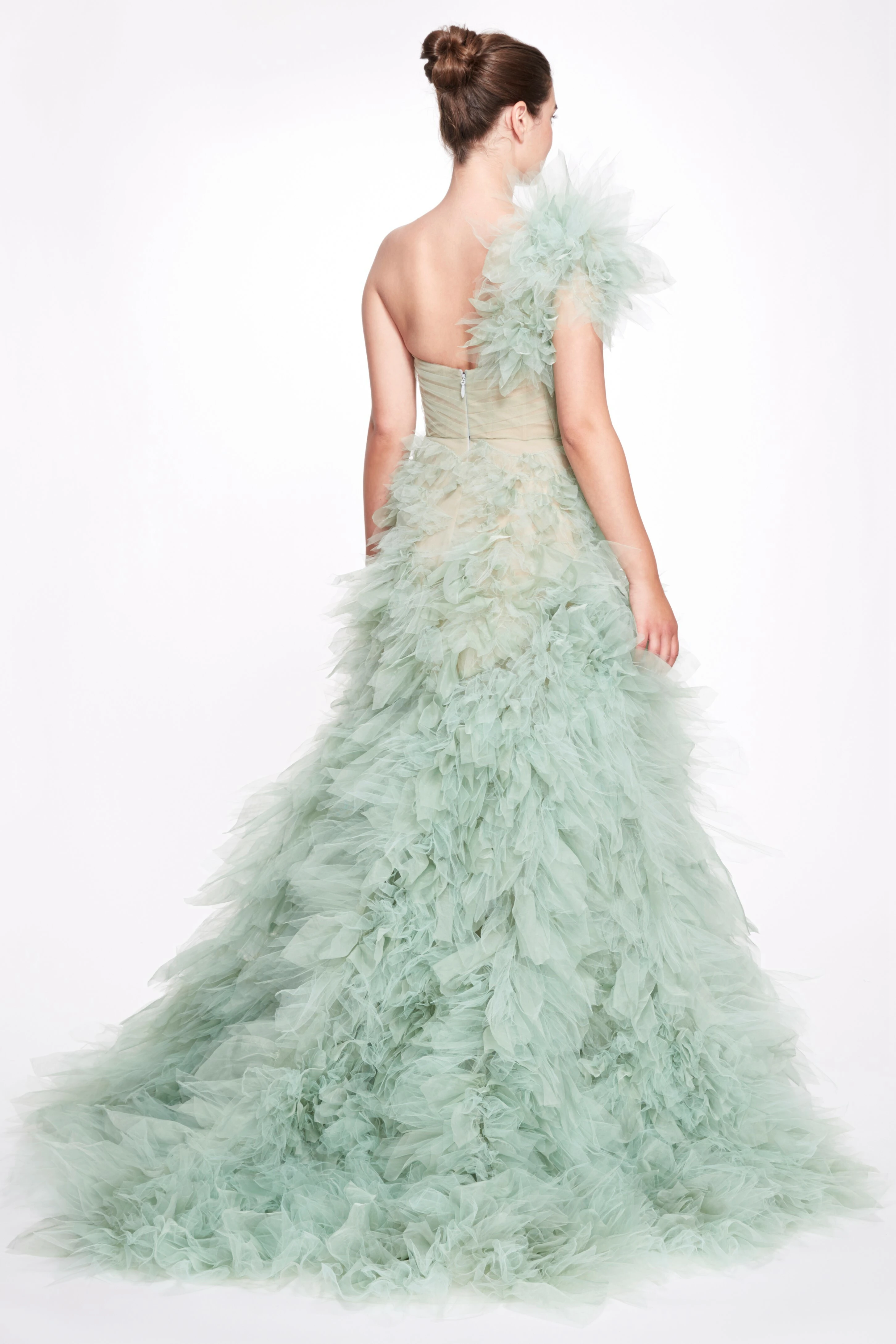 Бальное платье из органзы, на одно плечо, с оборками, из пышной тюли, с многослойным платьем