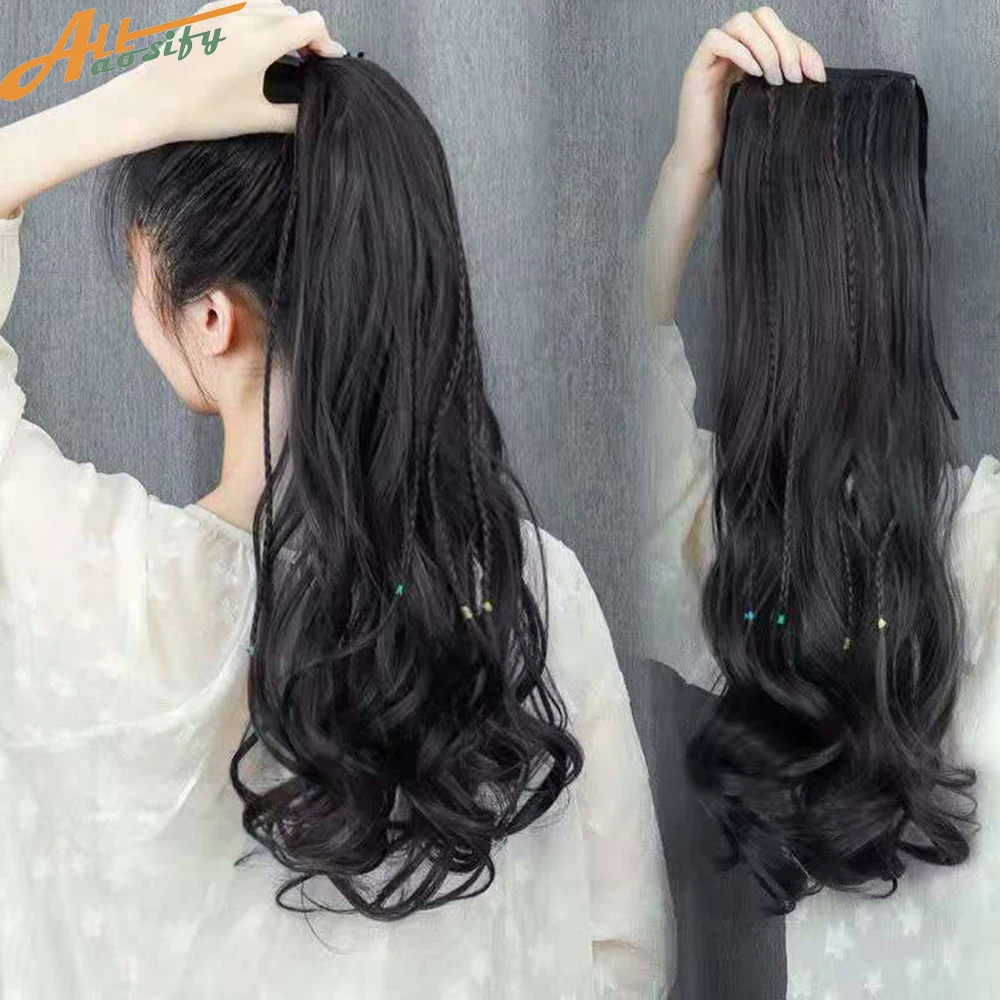 Allaosify синтетический длинный кудрявый волнистый конский хвост с косами аксессуары для волос для женщин волосы кулиска хвост удлинитель парик