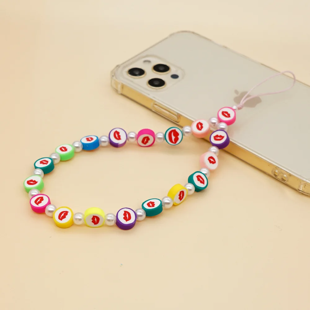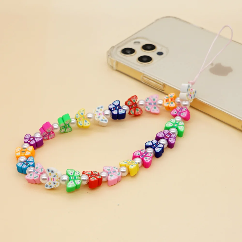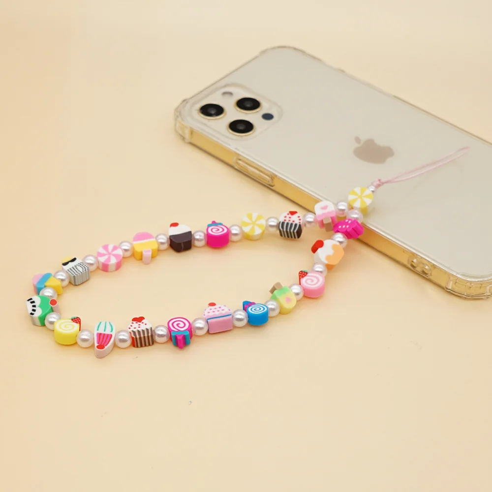 Цепочка для мобильного телефона, с бусинами, 8 видов, мобильный телефон, из полимерной глины
