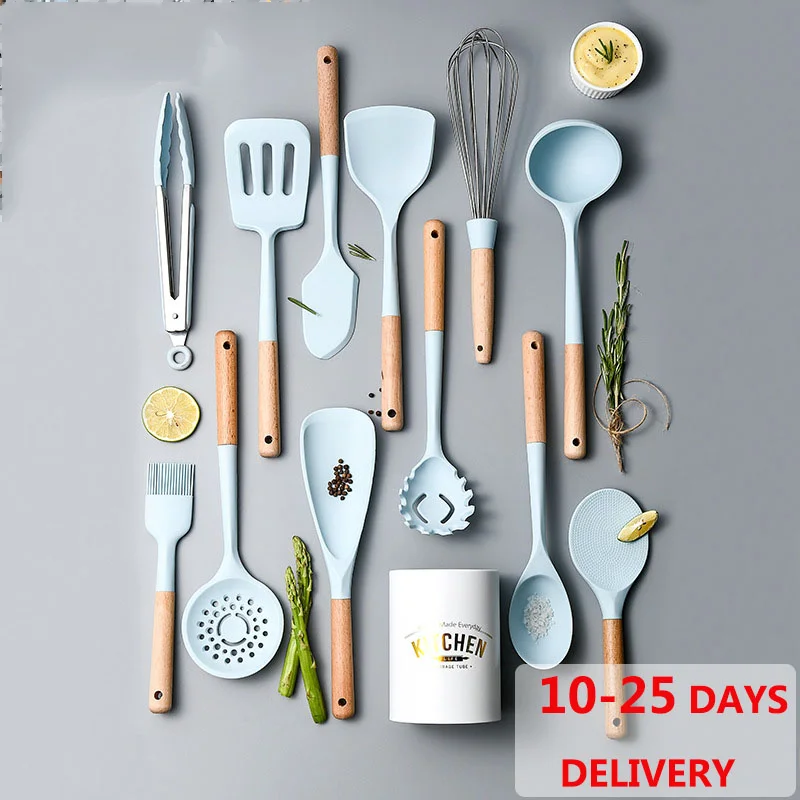 Набор силиконовых лопаток, термостойкий набор для приготовления пищи, наборы посуды с антипригарным покрытием, кухонная утварь, лопатка, деревянная ручка, инструменты для приготовления пищи