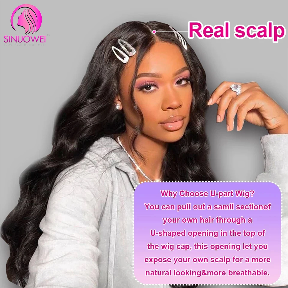 Парики Sinuowei с U-образной волной, европейские парики из человече...
