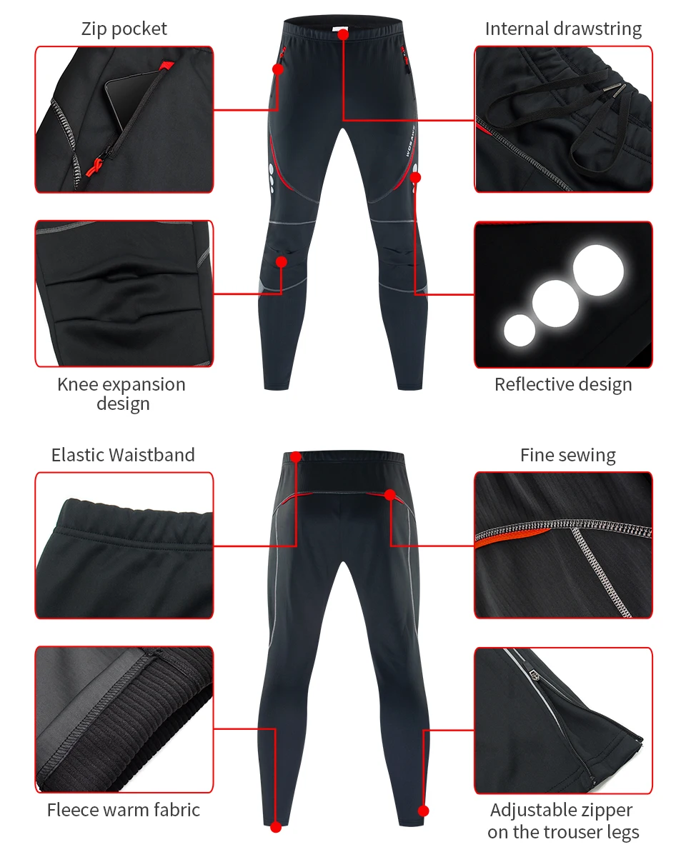 Брюки WOSAWE Мужские спортивные для велоспорта, дышащие Зимние флис...