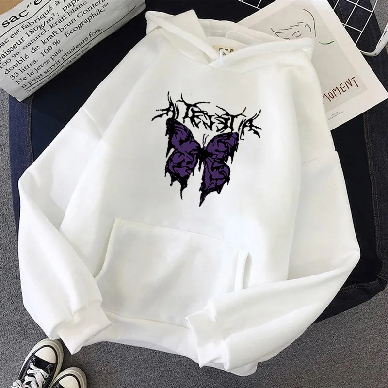 Женские толстовки с капюшоном в стиле панк-рок, толстовки с принтом бабочки, свитшоты с капюшоном в стиле Харадзюку большого размера, свободная одежда для любовников, Осень-зима, Kawaii