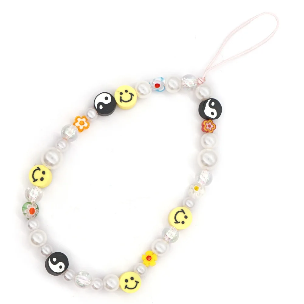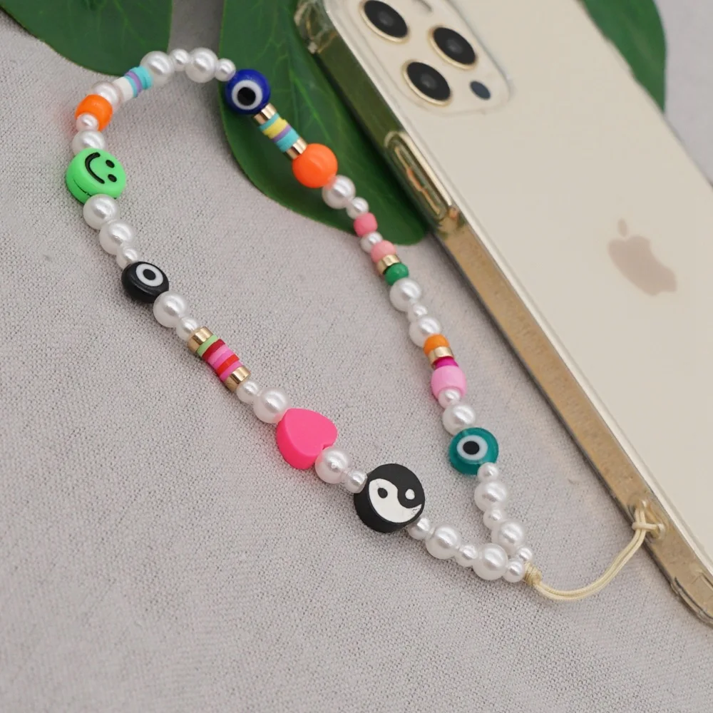 Новая подвеска бохо, круглый узор Тай-Чи, полимерная глина, жемчуг мобильный телефон, цепочка на шнурке, акриловые бусины, цепочка мобильный телефон