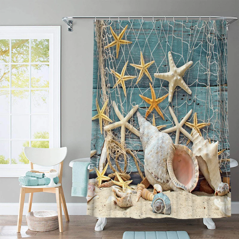 Морская звезда ракушка тканевая занавеска для душа занавеска для ванной s наборы нескользящий пляжный стиль узор Туалет полиэстеровый Чехол Набор ковриков