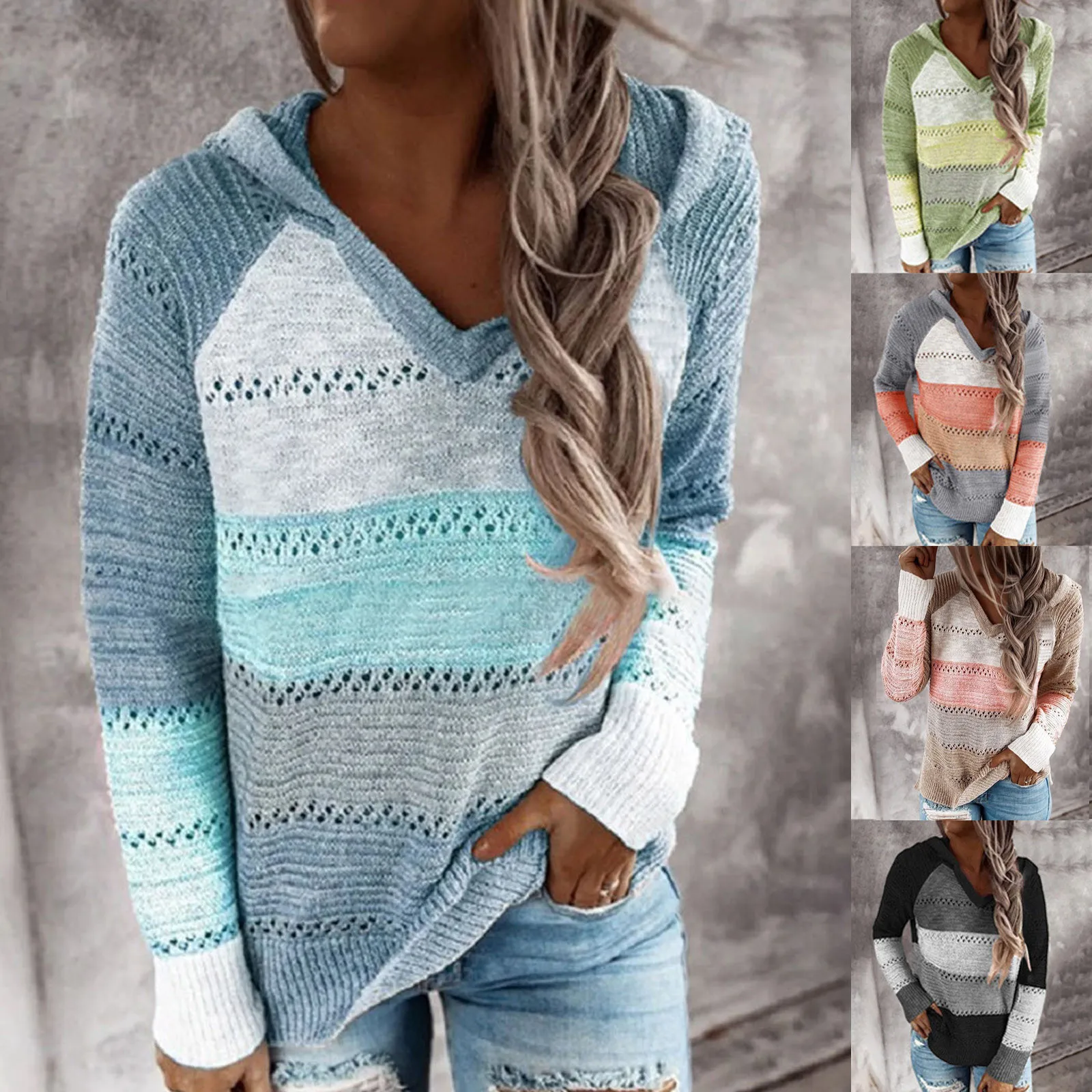 Женский свитер с капюшоном из эластичной ткани, удобный в носке, легкий вязаный пуловер