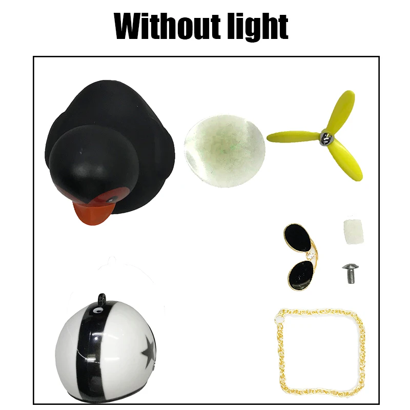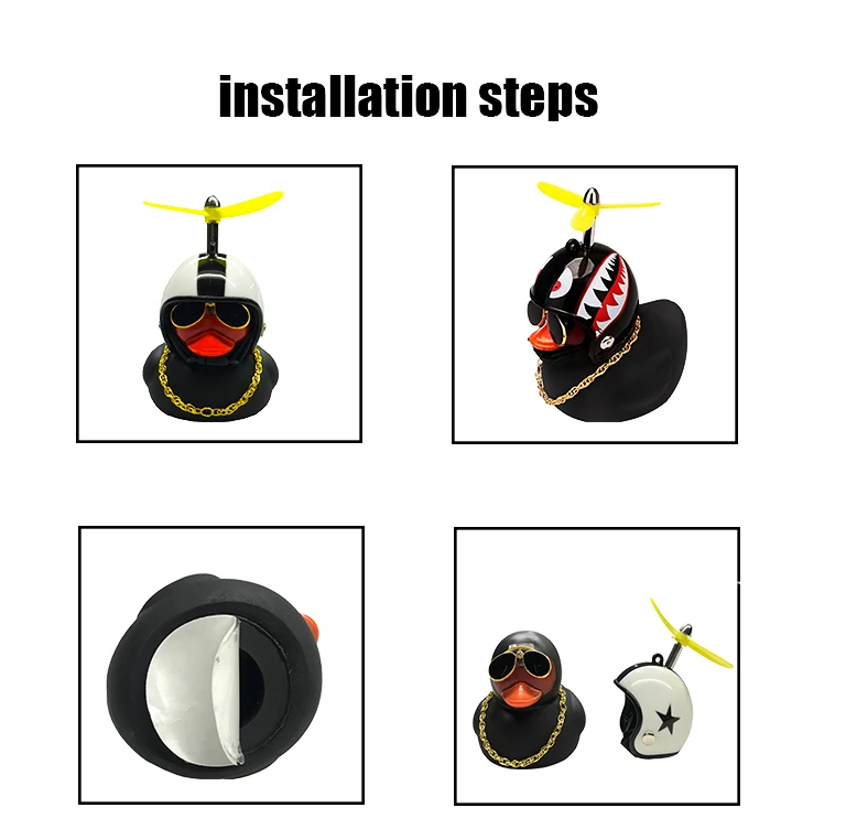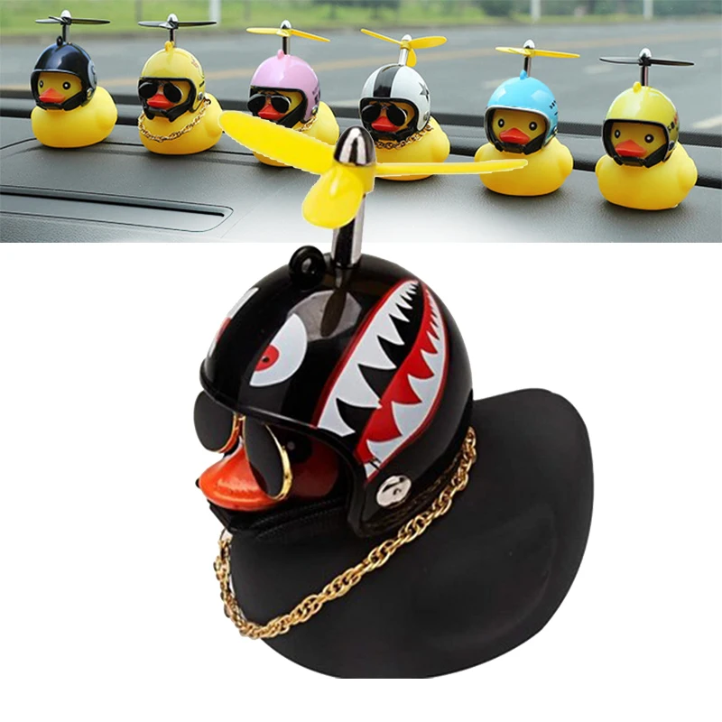 Новое и высокое качество.Модная Милая желтая утка со шлемом.С шлемом, воздушным винтом, солнцезащитными очками, металлической цепочкой-ожерельем, супер круто.С двойной боковой биркой и фиксирующей ручкой, это универсальный тип для автомобиля и мотоцикла или мотоцикла.Его также можно надеть на детский шлем, когда они катаются на коньках, это действительно восхитительно.Характеристики: