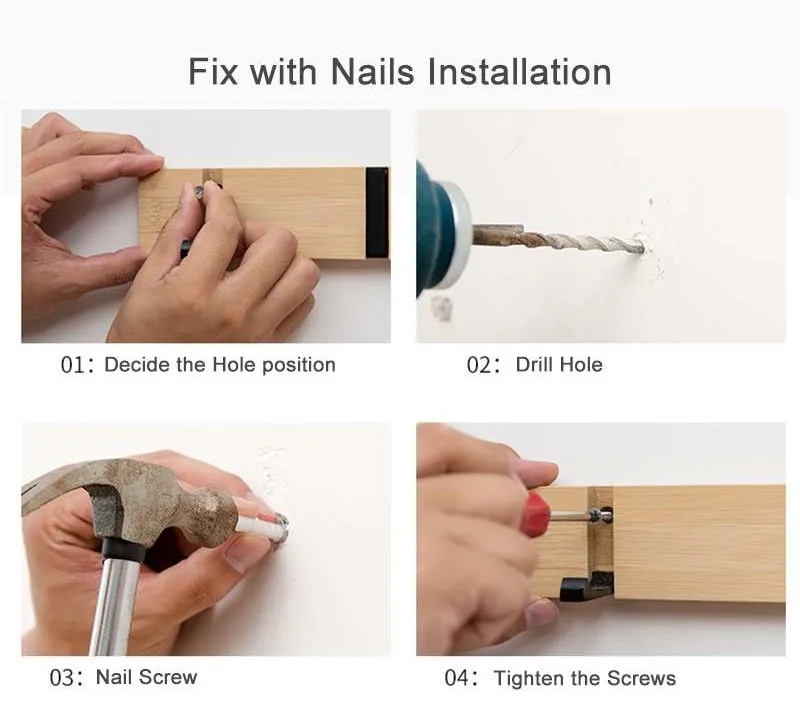 Каждая стойка имеет 2 способа установки, один клей или жидкий клей без ногтей, один винт. Винтовое сверло более надежное, чем клей