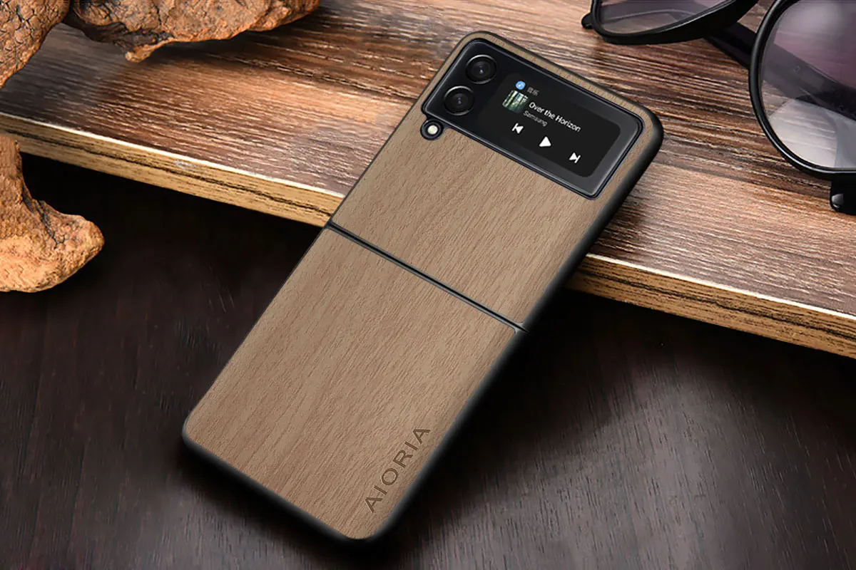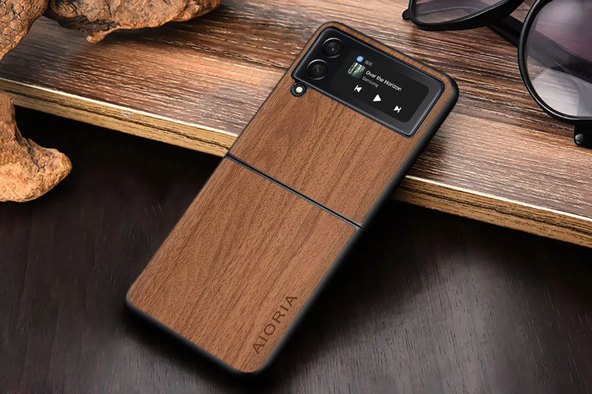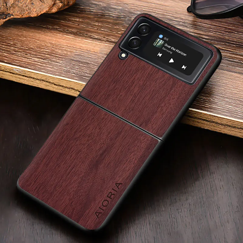 Чехол WoodLike для Samsung Galaxy Z Flip3 5G с откидной крышкой, 3 твёрдых ПК и дерева, чехлы из искусственной кожи, чехлы