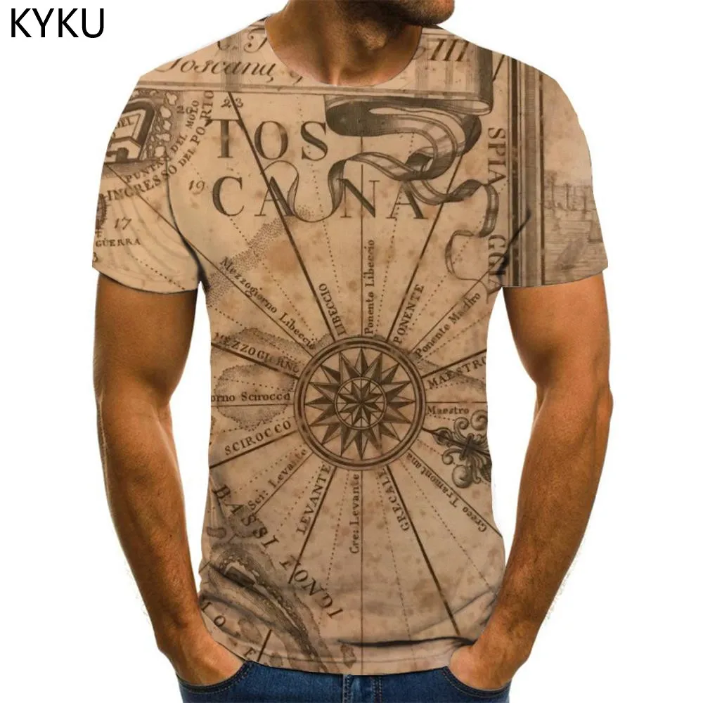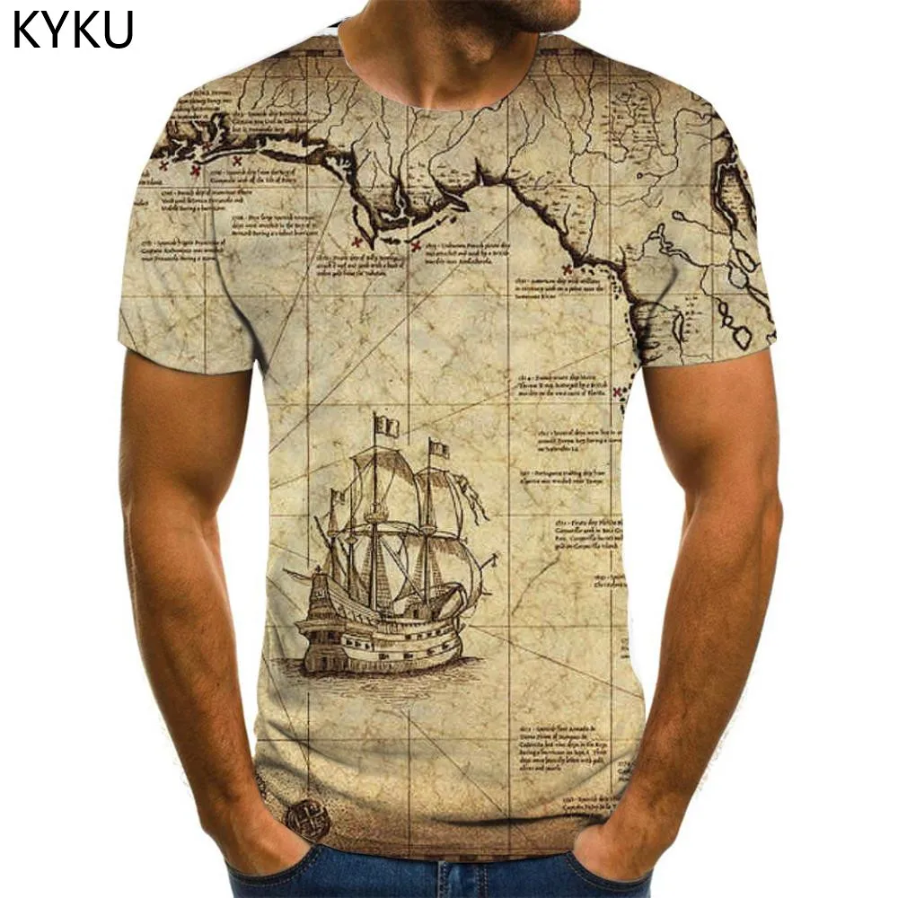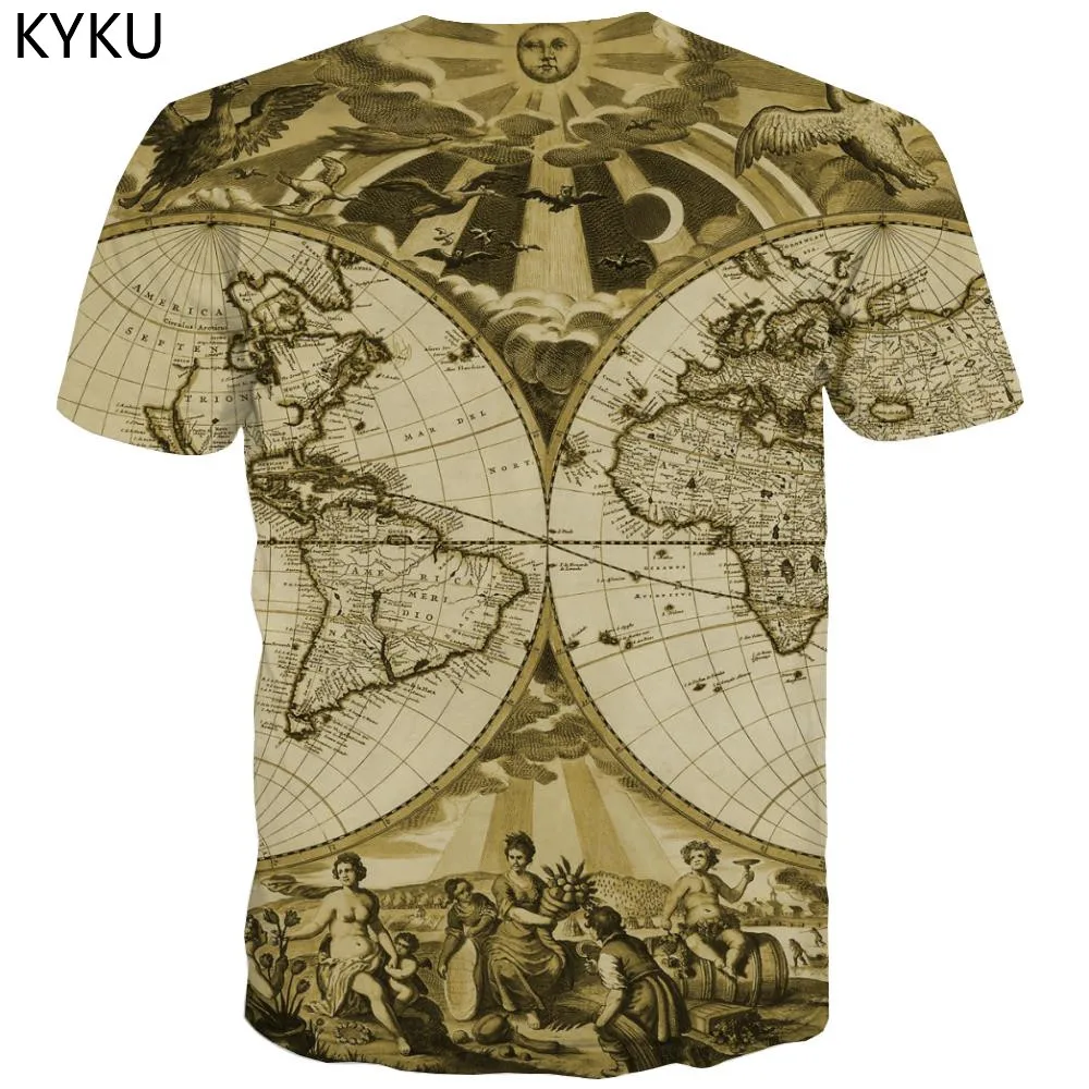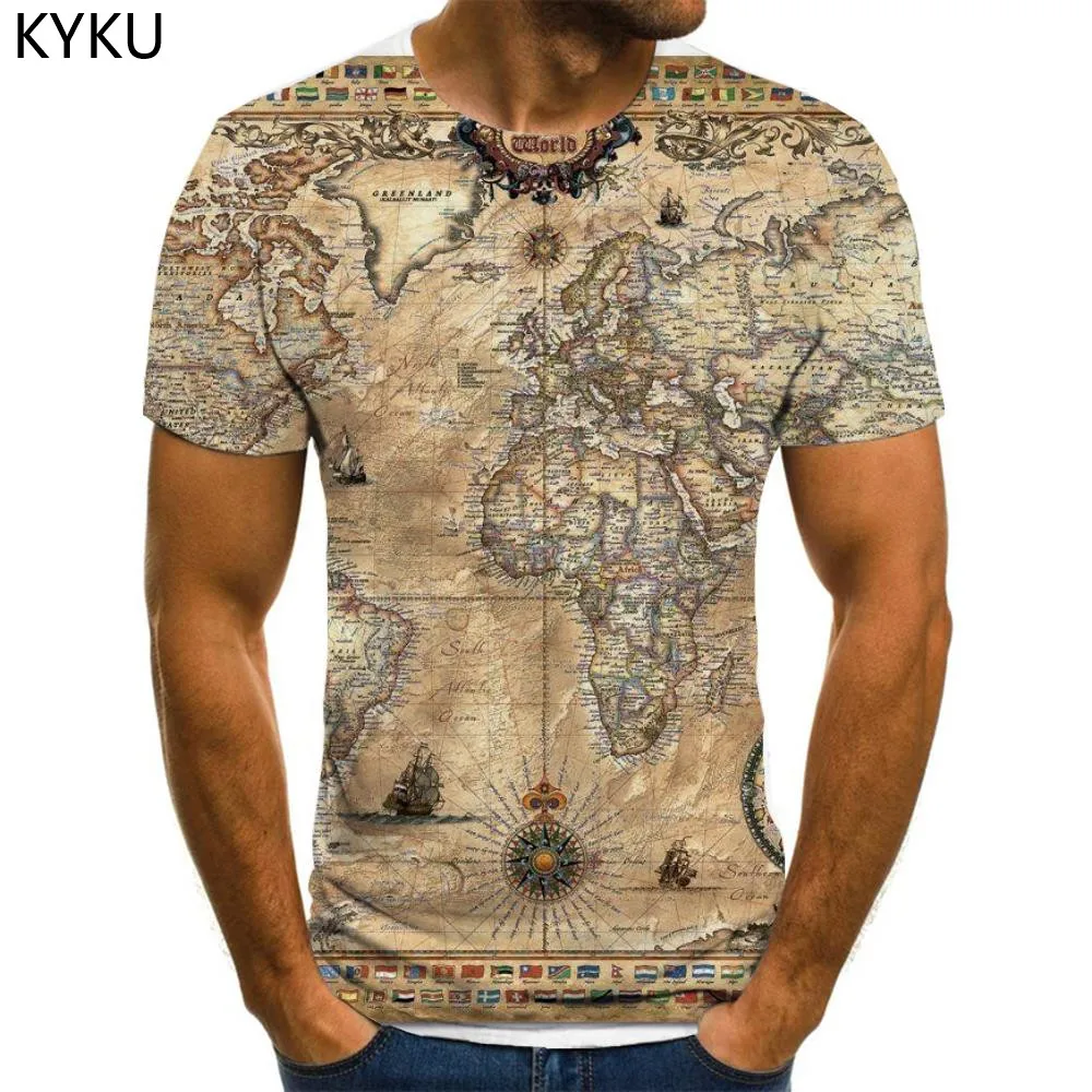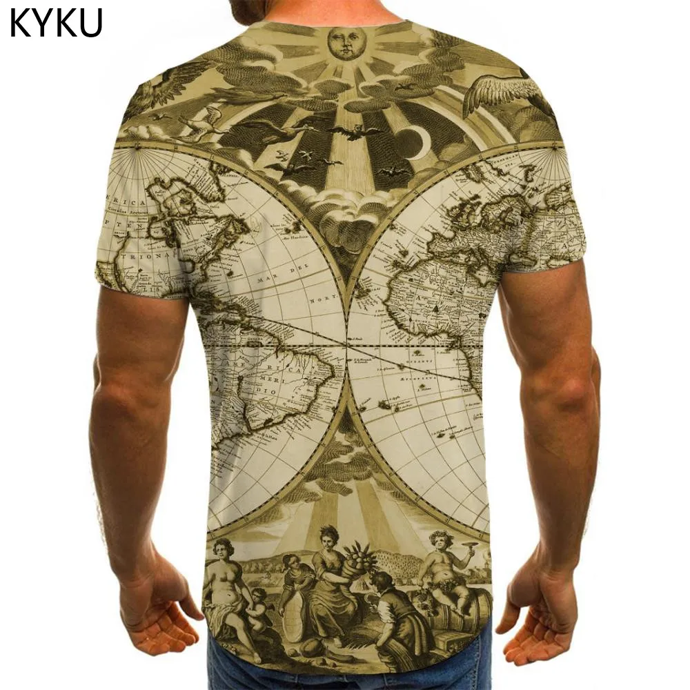 Мужская футболка с 3D-принтом KYKU, Повседневная футболка с принтом карты, в стиле ретро, лето