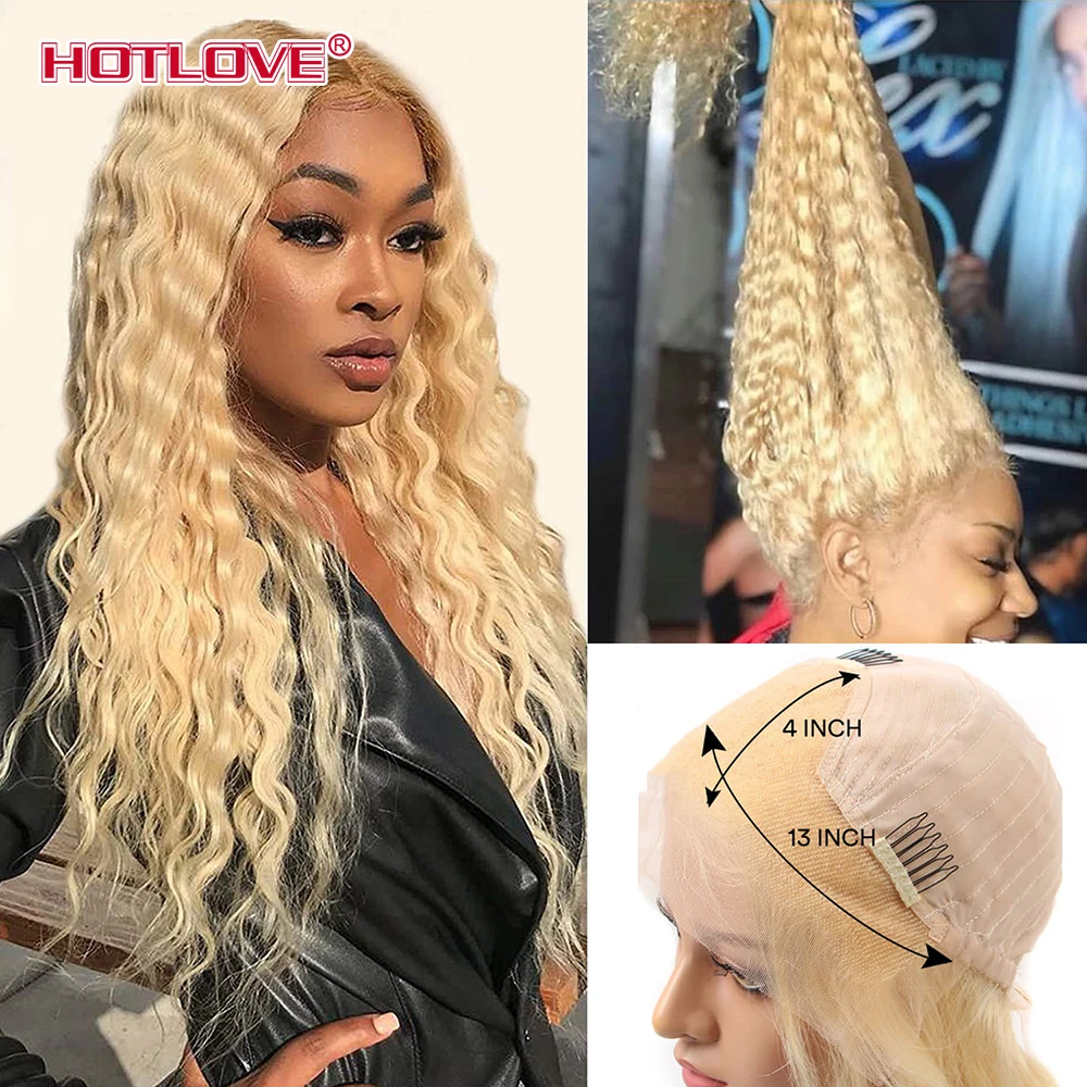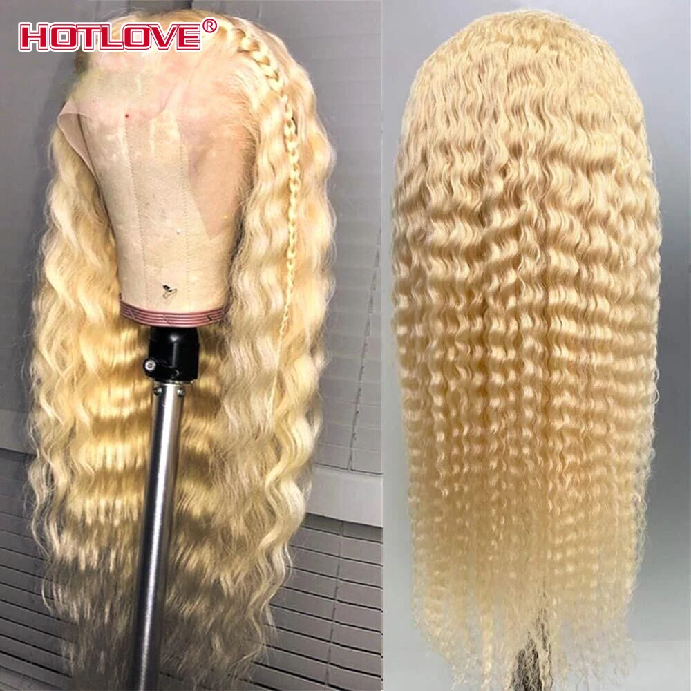 32 дюйма прозрачные Синтетические волосы на кружеве парик человеческих волос парики глубокая волна 13x 4 Синтетические волосы на кружеве al парики 613 Мёд блондинка для Для женщин предвар