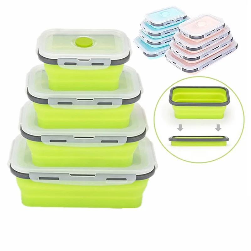 Набор силиконовых ланч-боксов, Штабелируемый контейнер для приготовления еды, складной Ланчбокс, контейнер для хранения в микроволновой печи, герметичный, свежий
