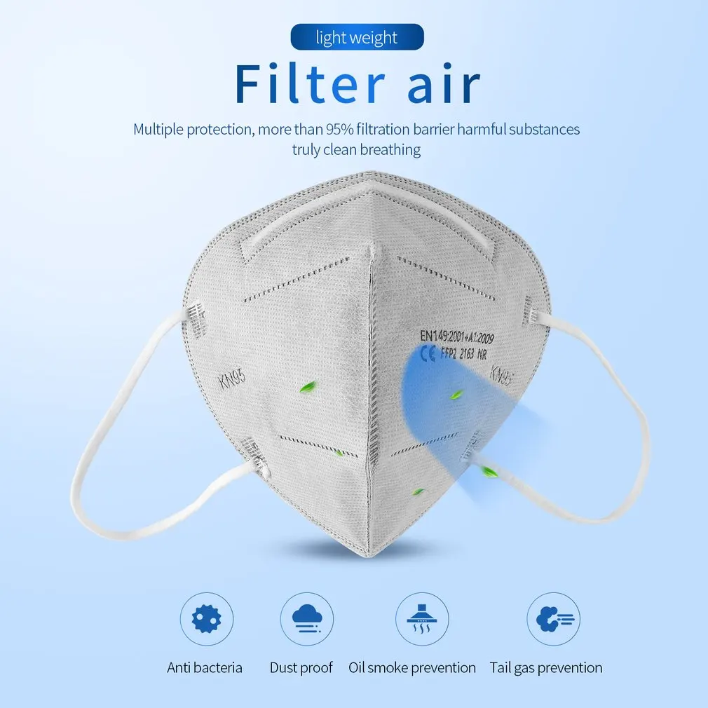 Многослойная защитная маска FFP2 с резинкой для ушей без клапана, пылезащитные одноразовые маски против смога, 10 шт.