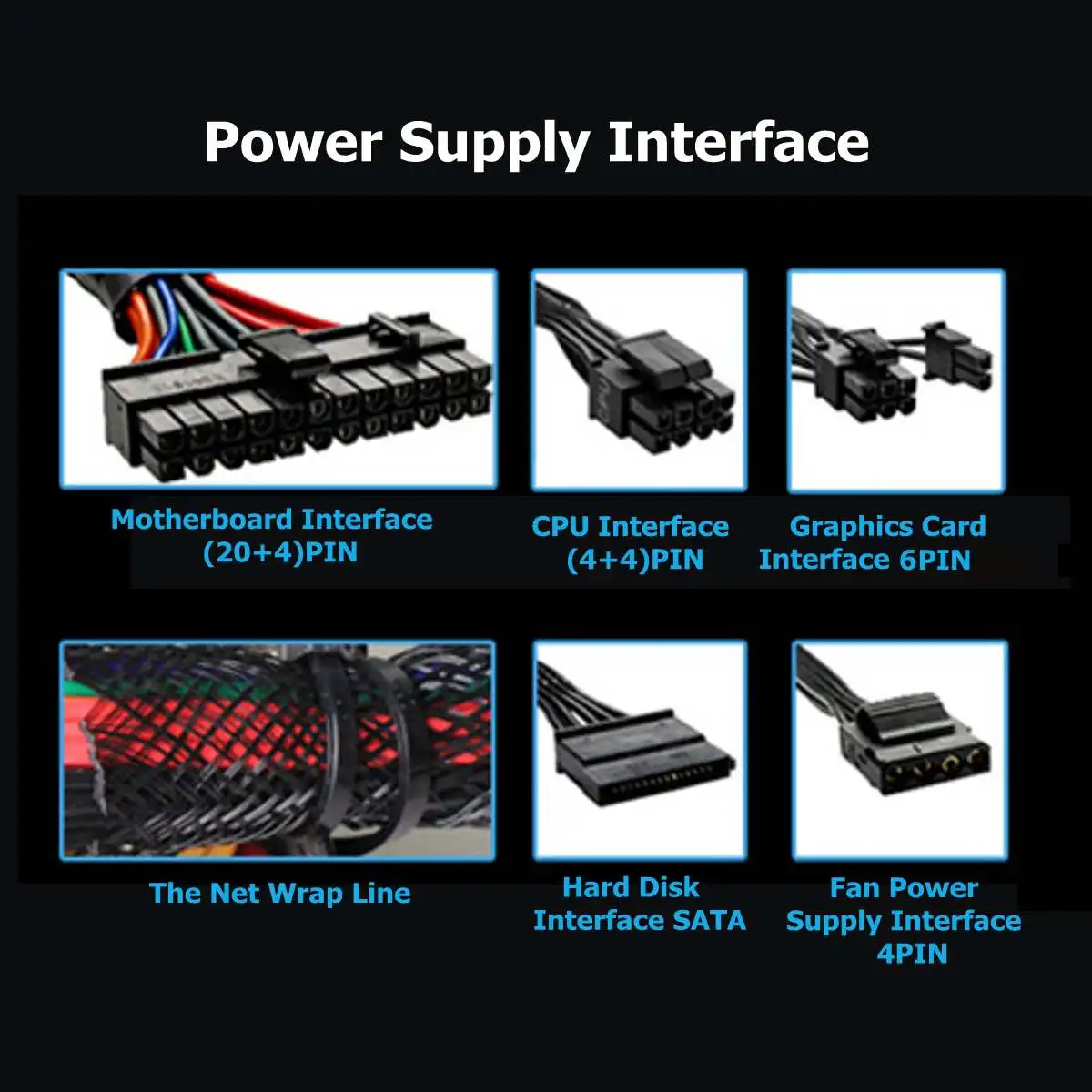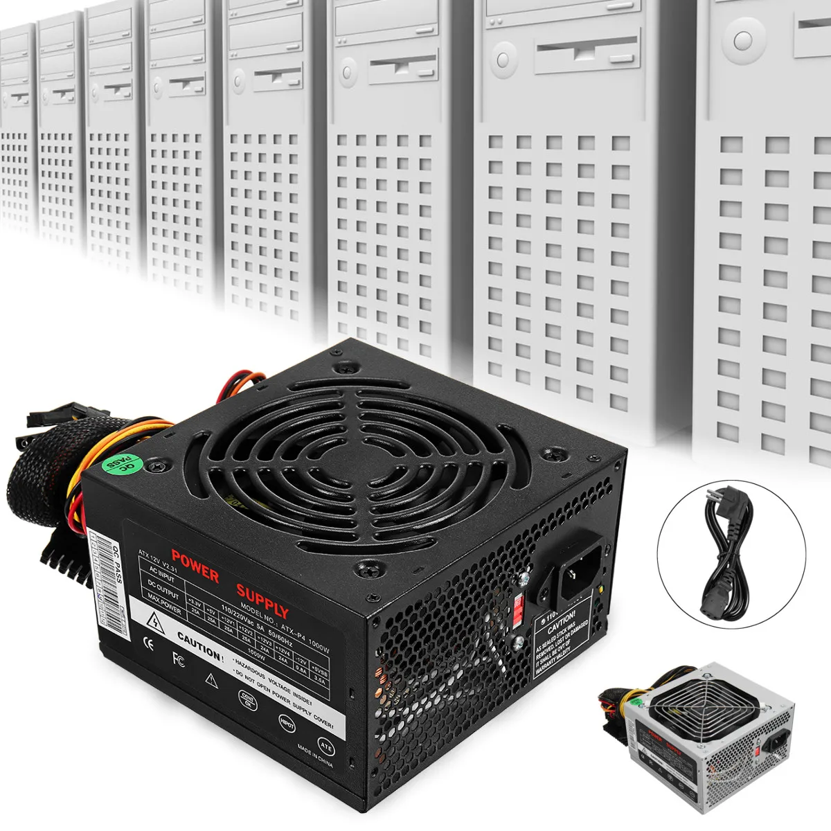 Блок питания 1000 Вт, блок питания PFC, тихий вентилятор, ATX 24pin 12 В, компьютер SATA, игровой ПК, блок питания для компьютера Intel, AMD, черный цвет