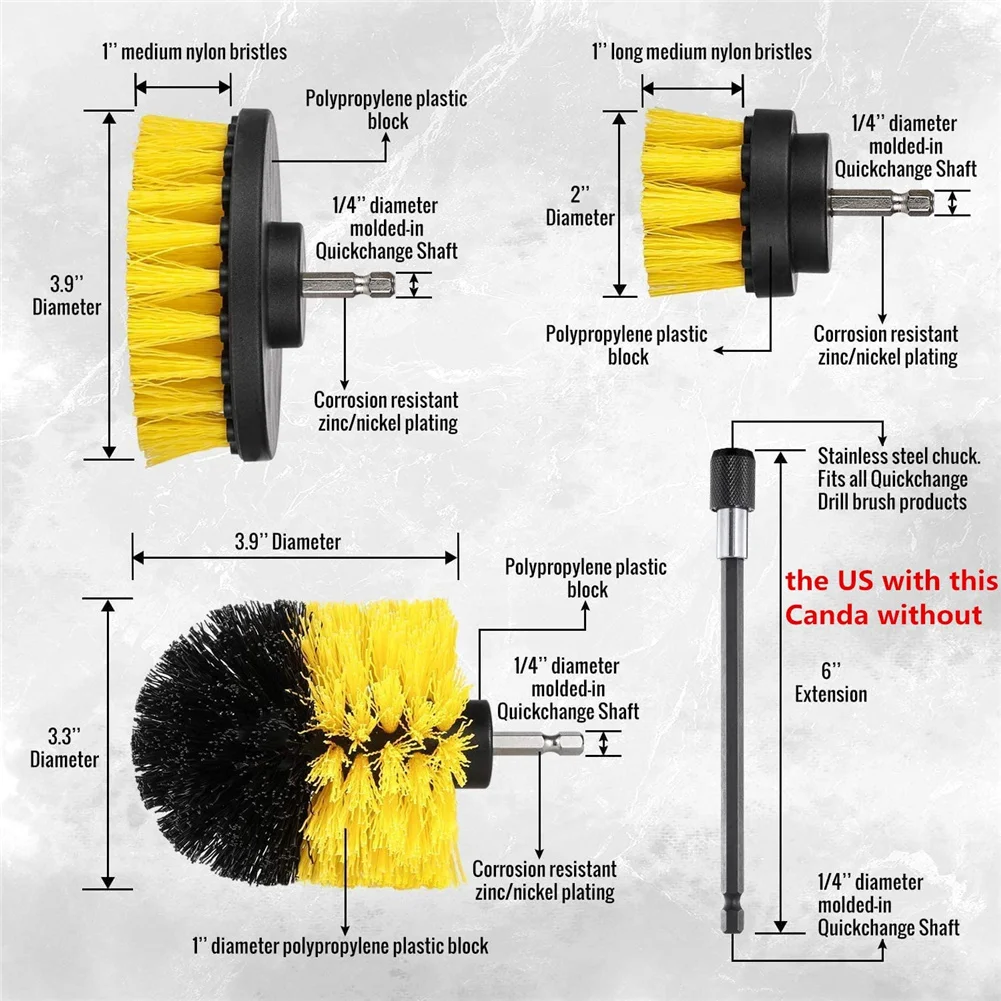 Набор для чистки дрели, щетки чистка ванны, 4 шт.
