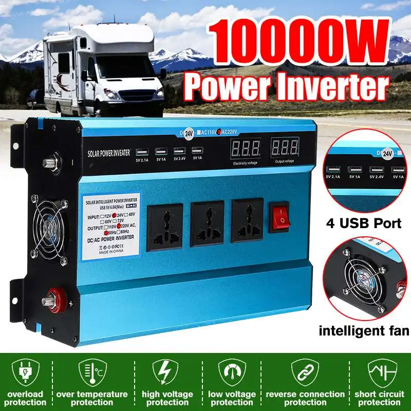 Преобразователь напряжения, 12 В24 В48 В, 10000 Вт, для автомобиля, солнечная энергия, 4 USB-порта, преобразователь напряжения, модифицированный синусоидальный инвертор для дома и автомобиля