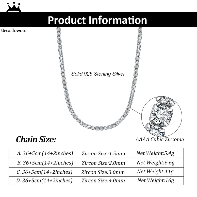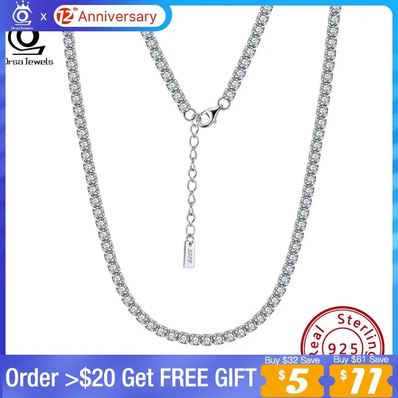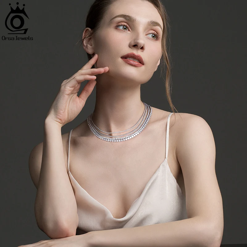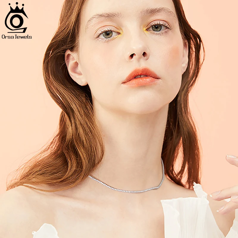 ORSA JEWELS сверкающая цепочка из фианита для тенниса, ожерелье для женщин из стерлингового серебра 925 пробы, ожерелье из чистого фианита, свадебные ювелирные изделия SC45