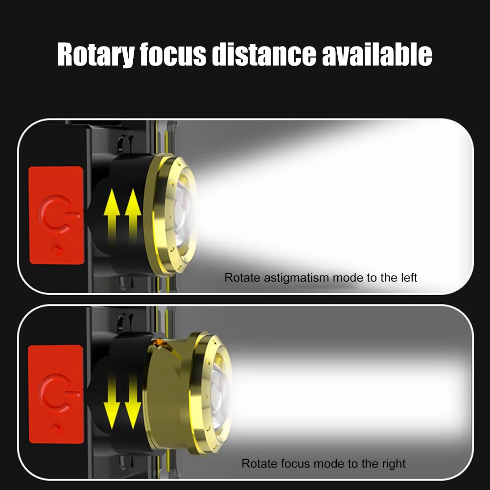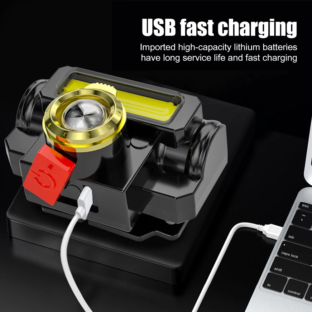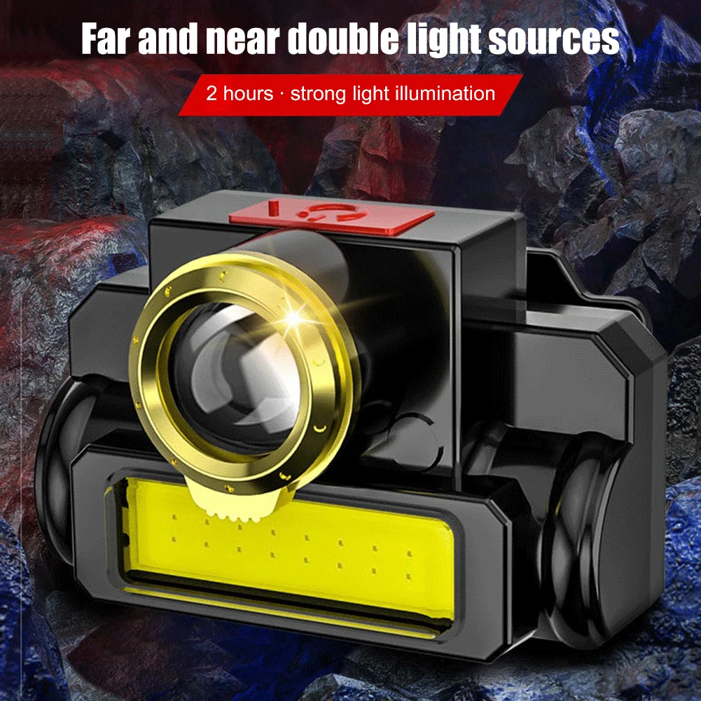 Портативный светодиодный налобный фонарь XPE + COB, водонепроницаемый уличный фонарь с USB-зарядкой и зумом, для рыбалки, походов