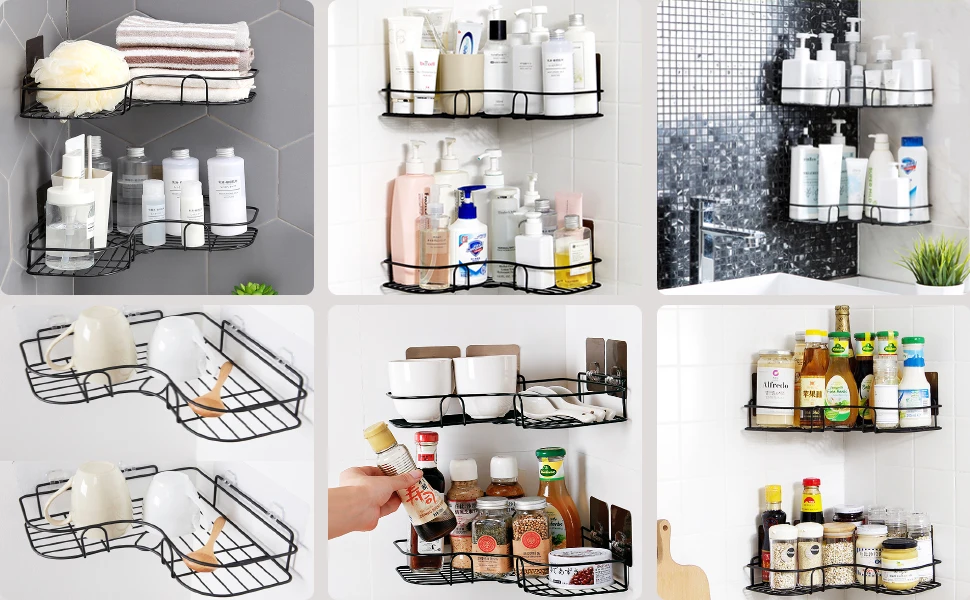 ✅Удобство использования: в комплекте с 2 полками, наш угловой органайзер для душа идеально подходит для ванной и кухни. В нем можно хранить мыло, шампунь, очищающее средство для лица, лосьон, кисти и так далее. Также подходит для банок для специй, банок, бутылок и многого другого, экономит много места.