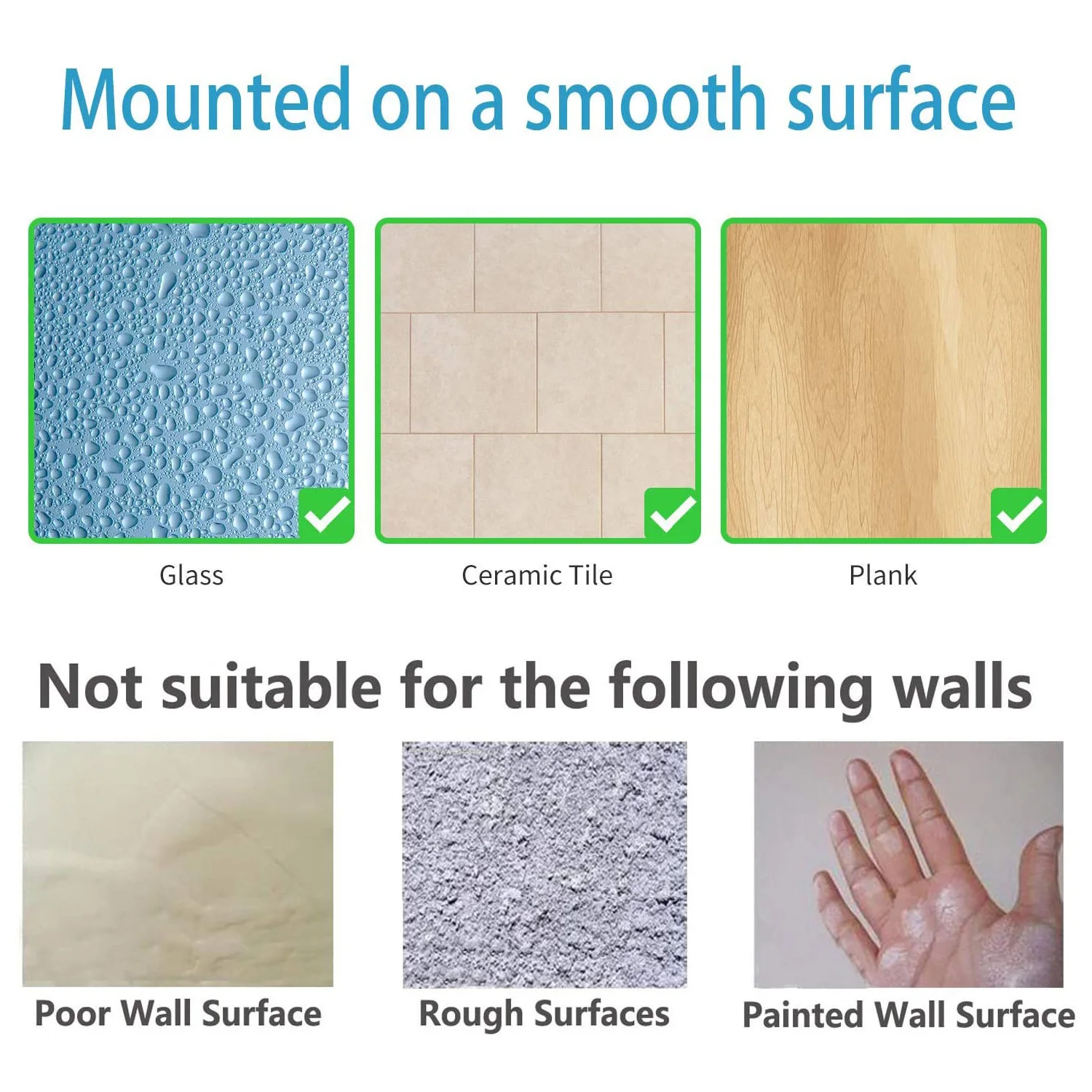 ✅Подходит для типов стен: с клейкой наклейкой, угловая душевая стойка подходит для любой непористой, гладкой и плоской поверхности, керамической плитки, гранита, нержавеющей стали, акрила, ламинат и любая Непористая поверхность с глянцевым покрытием. Не требует сверления, не повреждает стену.