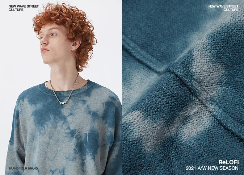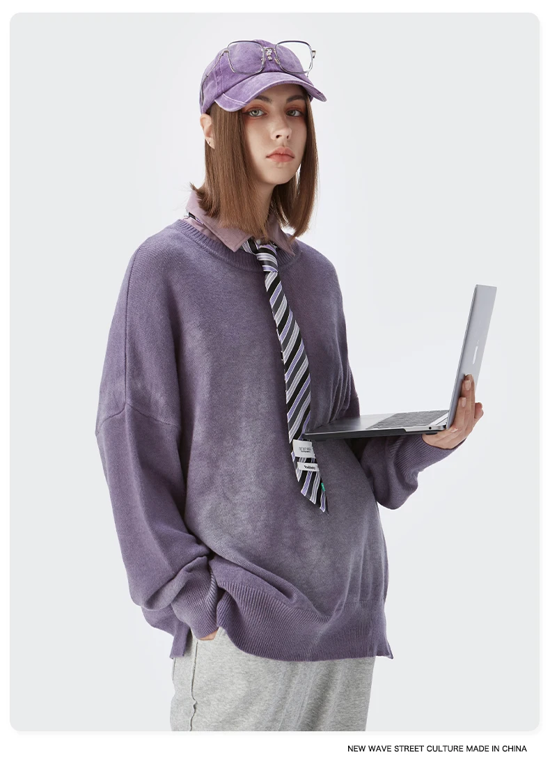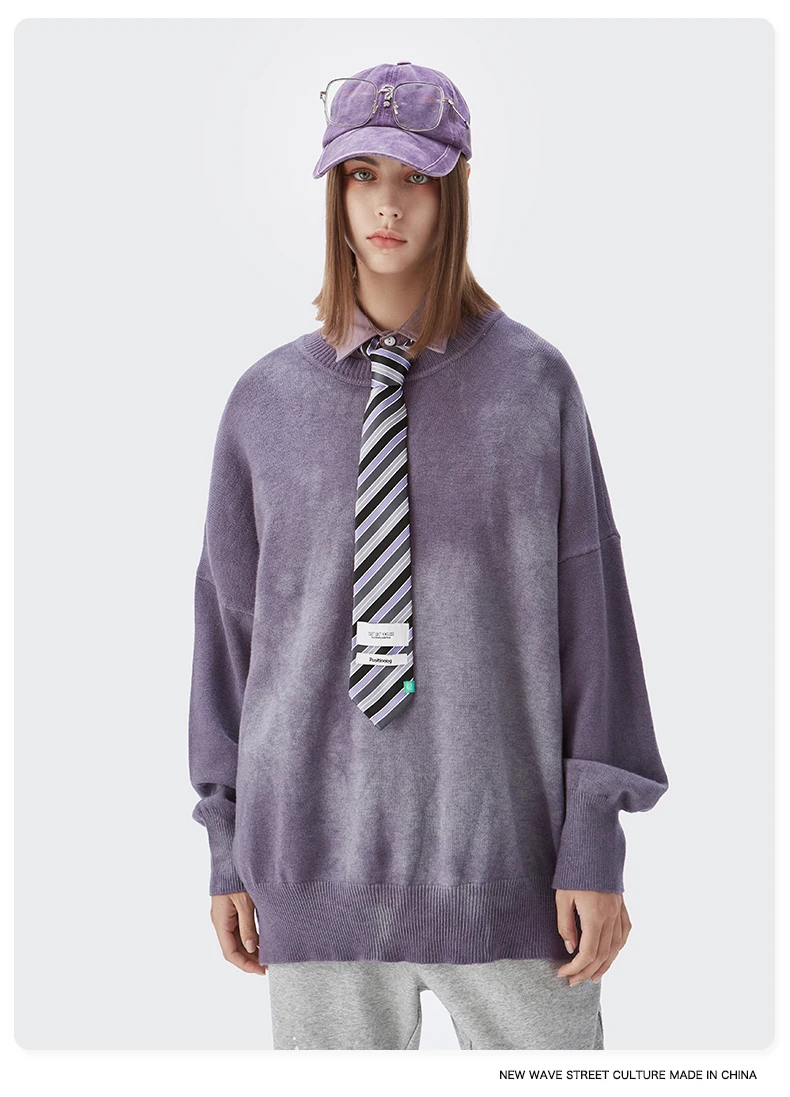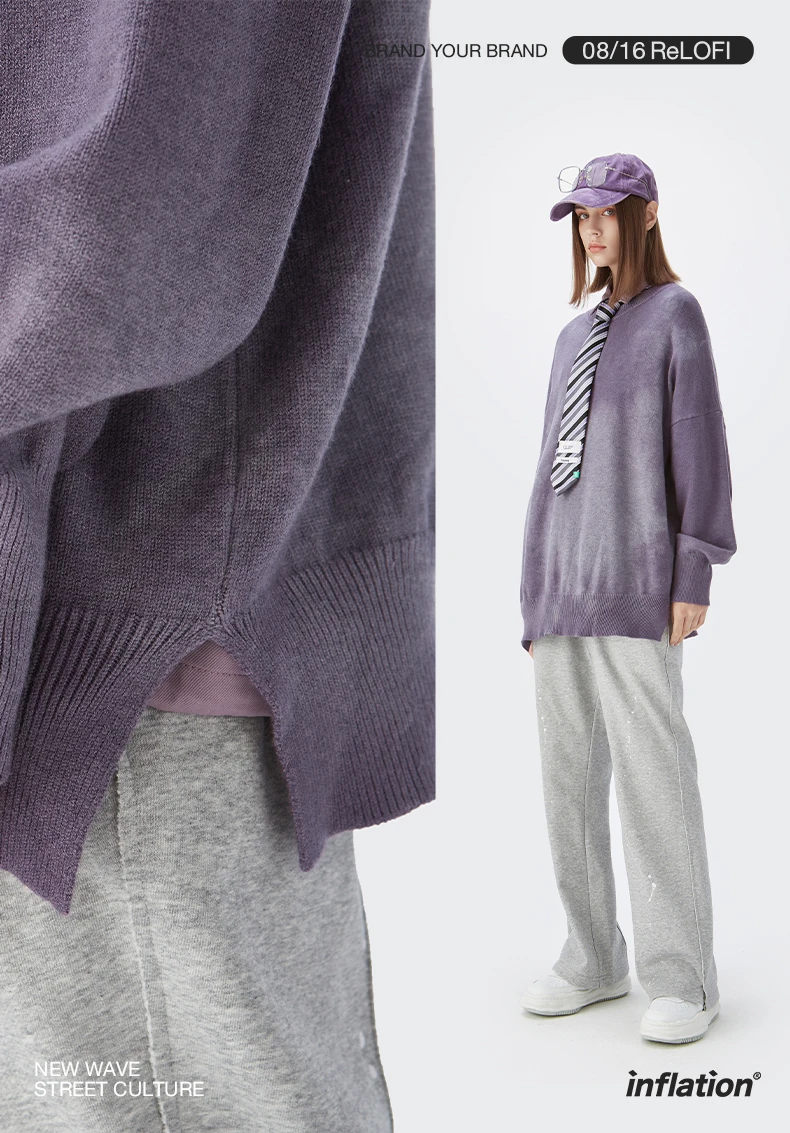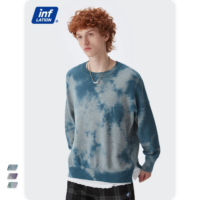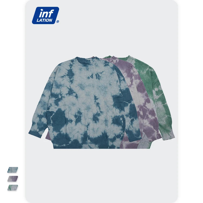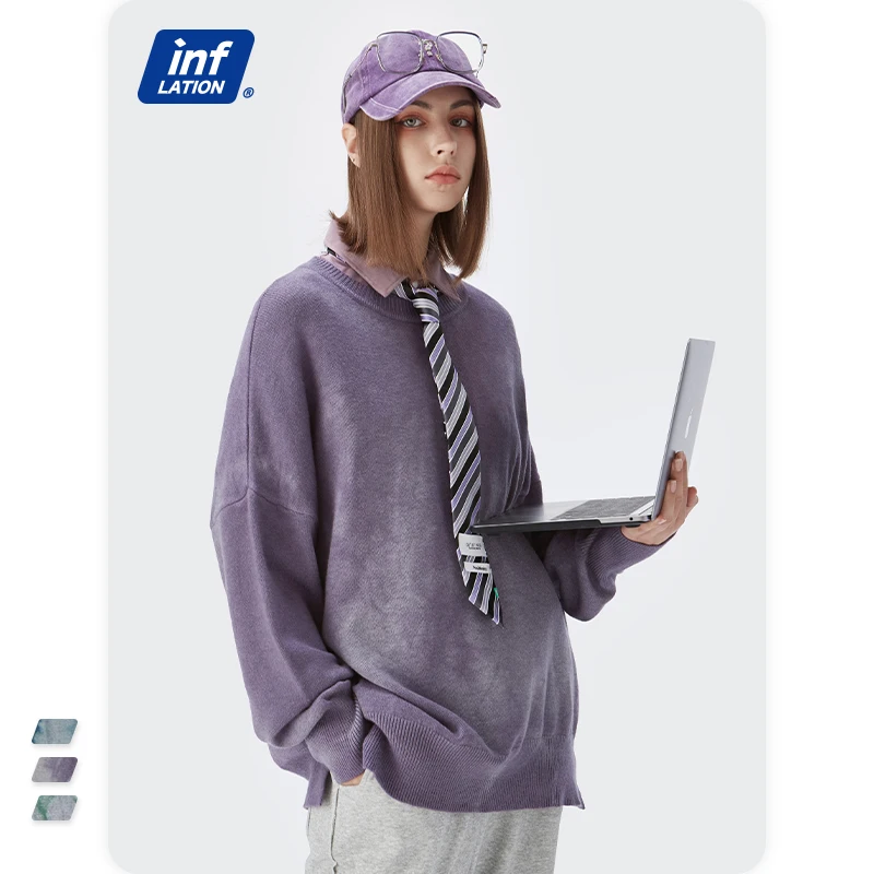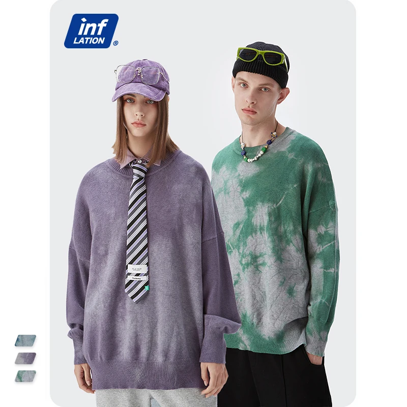 INFLATION, Свитер оверсайз для мужчин и женщин, винтажный свитер с галстуком-краской для пары, модный свитер с вырезом лодочкой, вязаный пуловер, свитер для мужчин