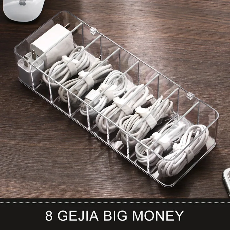 Кабельный ящик для хранения, прозрачный пластиковый контейнер для передачи данных для проводов, настольный органайзер, Канцелярский органайзер для макияжа, USB шкатулка для ювелирных изделий
