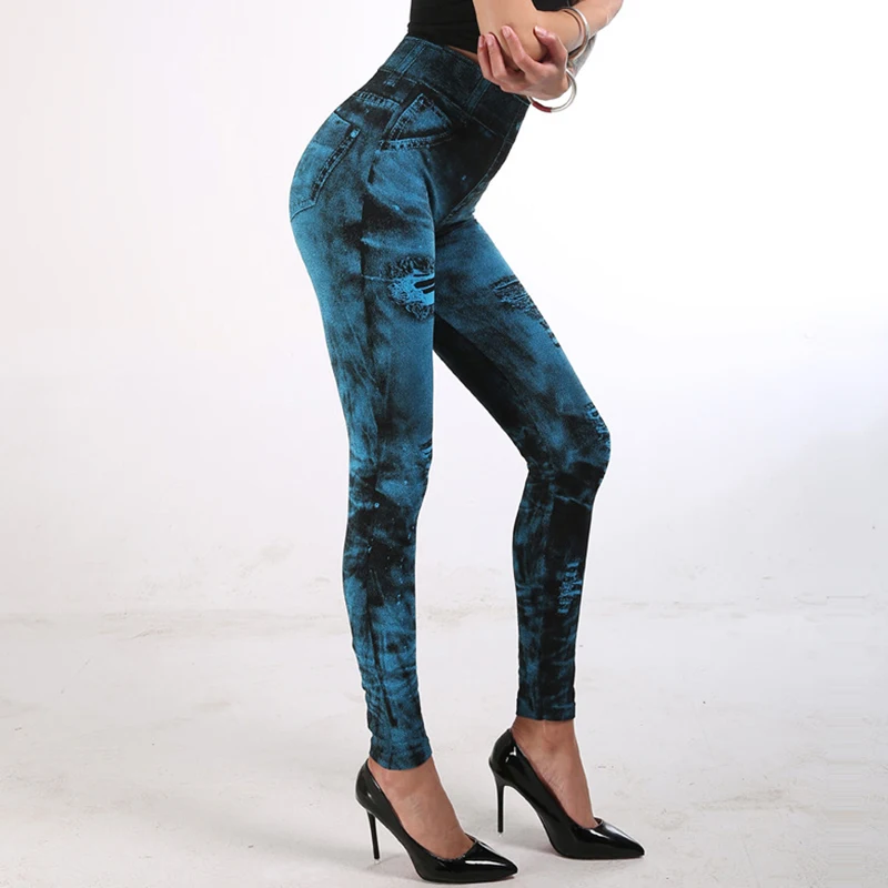 Женские эластичные джинсовые леггинсы, облегающие Бесшовные Брюки-карандаш с высокой талией и эффектом пуш-ап, повседневные брюки из денима, штаны для йоги, новинка 2021
