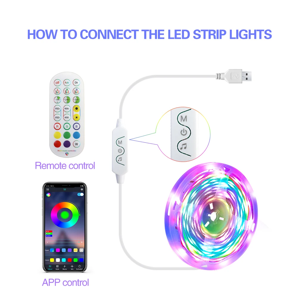 Светодиодные ленты цвета радуги RGBIC со встроенным чипом, USB 5 В, Bluetooth, музыкальное управление звуком, светодиодная симфония, Bluetooth App с дистанционным управлением