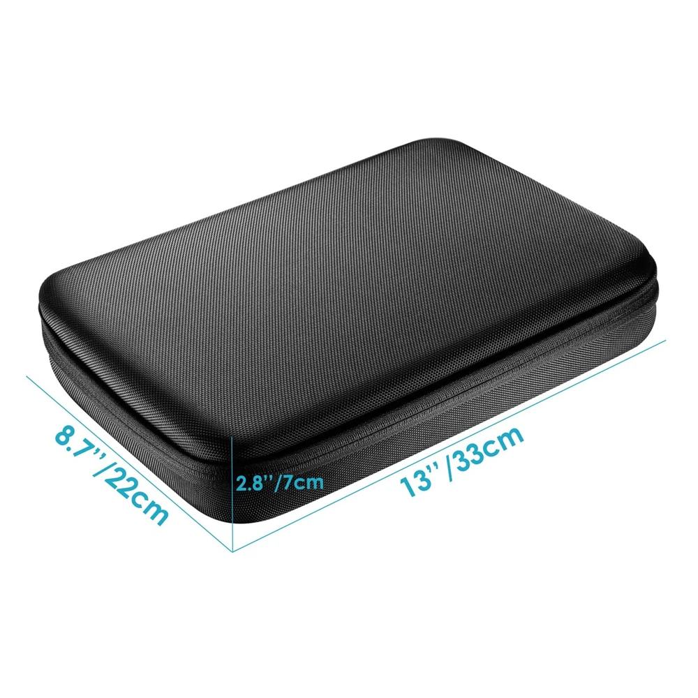 Особенности:1. Жесткий материал EVA с противоударными внутренними вырезами из пенопласта, предназначен для различных аксессуаров.2, уникальный и специально разработанный чехол для хранения GoPro и других аксессуаров экшн-камеры с губкой для защиты ваших камер, обеспечивает безопасность, защиту и организованность ваших GoPro и аксессуаров.3. Храните аккумулятор, зарядное устройство, набор аккумуляторов и вашу экшн-камеру, с сетчатым мешком вверх ногами, чтобы удерживать другие маленькие аксессуары.4, легкий, мягкий и компактный, идеально подходит в качестве защитного футляра для путешествий, не оставляет пыли и защищает камеру внутри этого чехла.5, прочные и прочные двойные молнии удобно использовать и защитить камеру от скольжения.Описание:Размер (Д * Ш * В)Большая сумка 32*21*6,5 см