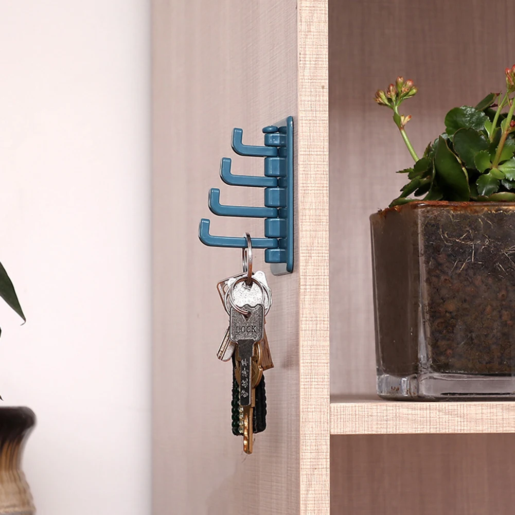 Вращающийся настенный крючок на клейкой основе с четырьмя кронштейнами, вешалка для ключей без отверстий для ванной и кухни, стойка для хранения полотенец с сильной нагрузкой