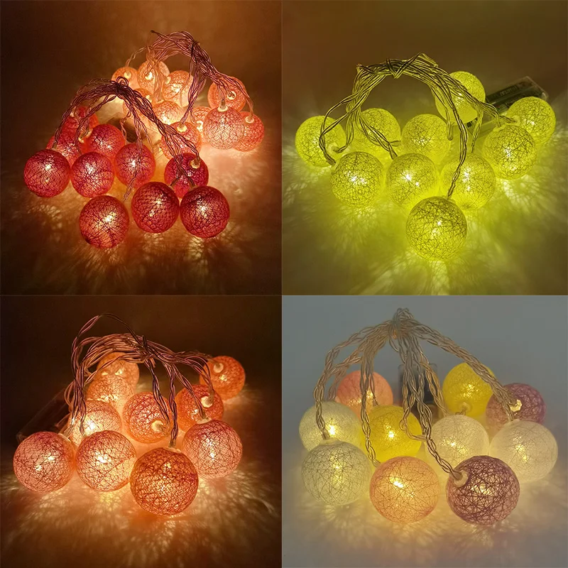 2 м 10 светодиодных хлопковых шаровых гирлянд, Рождественская Свадебная сказочная гирлянда