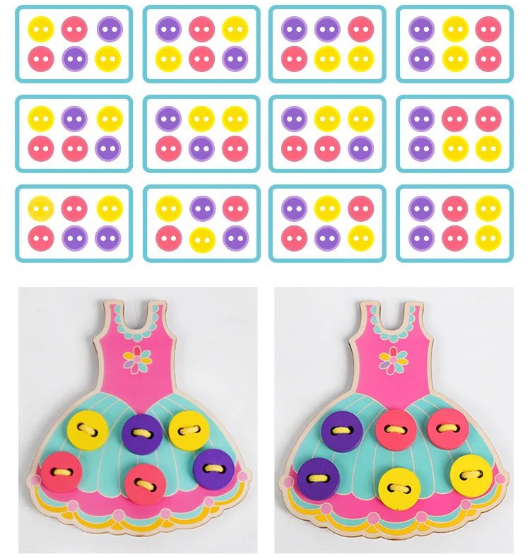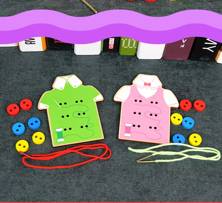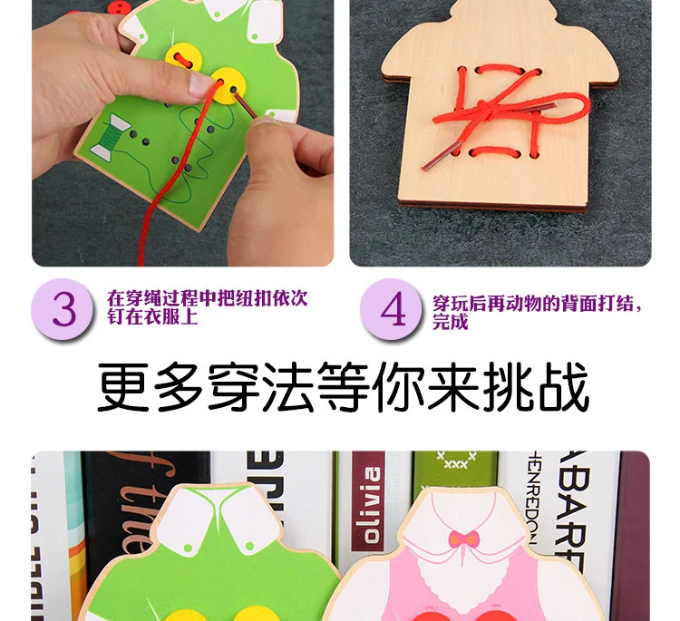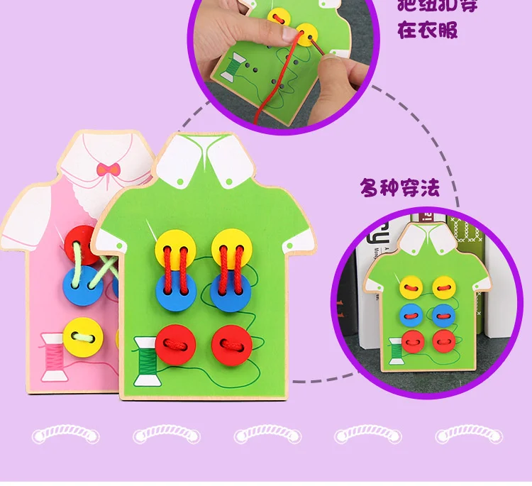 Деревянные Монтессори, ручная работа, одежда для шитья, пуговицы, б...
