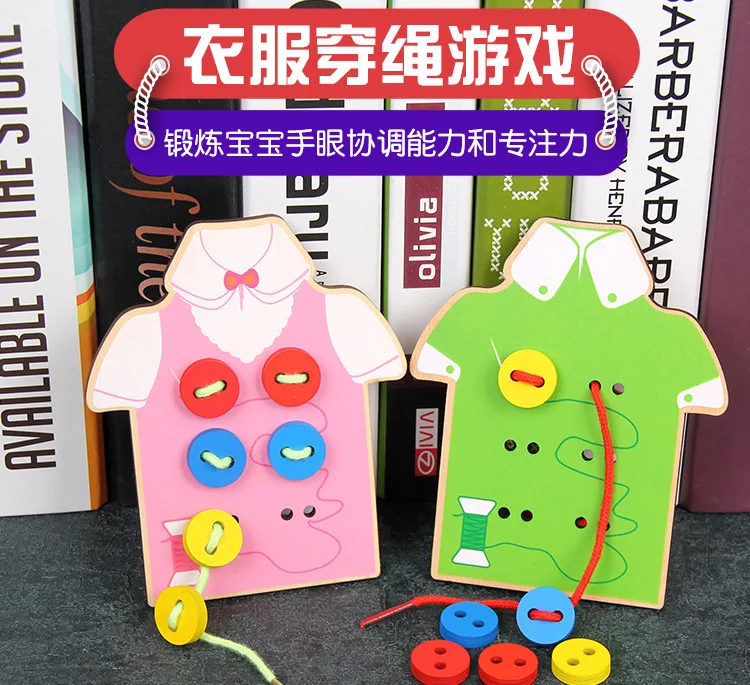 Детские бусины на шнуровке, деревянные игрушки для малышей, Пришивные пуговицы, Обучающие Игрушки для раннего образования, головоломка, игрушки для путешествий, подарок
