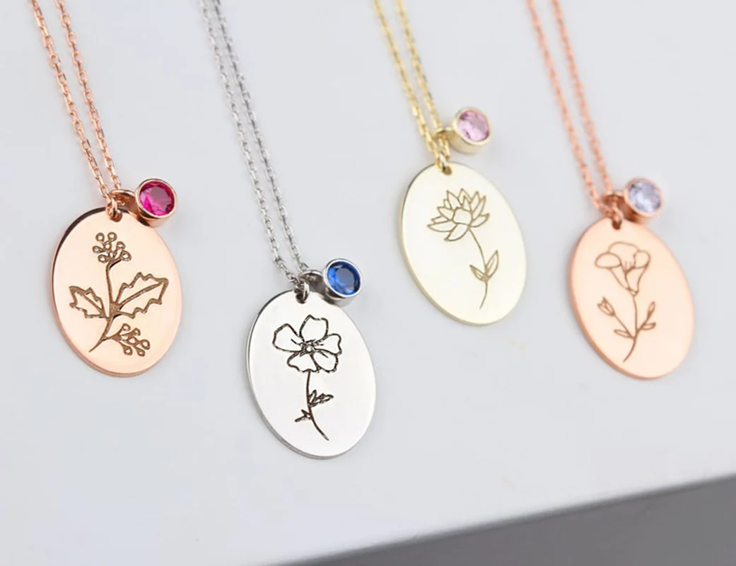 Новый заказной рождения луна цветок ожерелье персонализированные камень по дню рождения ожерелье из нержавеющей стали кулон ожерелье леди подарок на день рождения