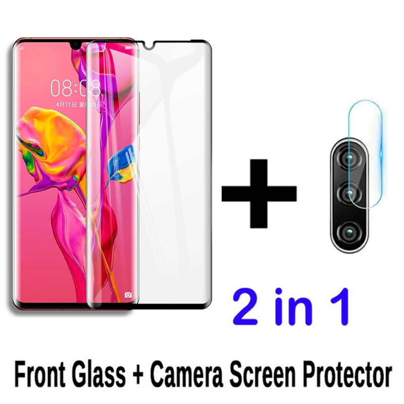 2 в 1 Защитное стекло для Huawei P30 полное покрытие защита экрана ...