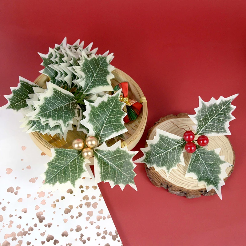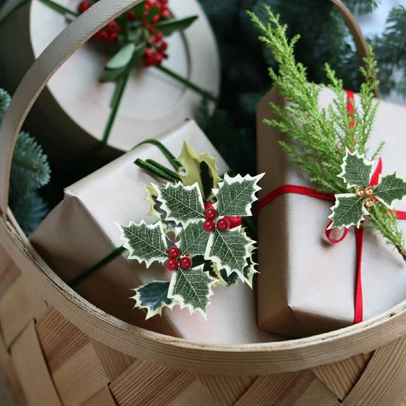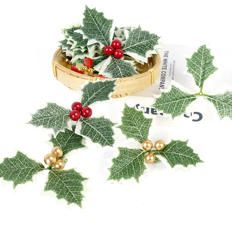 510 шт. зеленые листья падуба и красные ягоды Падуба, Золотая вишня...