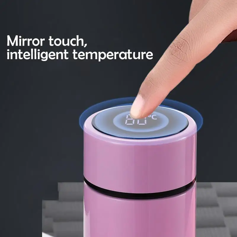 Введение продукта:<Температурный дисплей: умный дизайн, вы просто прикасайтесь к крышке, на сенсорном экране отображается текущая температура вашего напитка, видимая температура помогает вам избежать ожогов.<Нет необходимости в зарядке: Отображение температуры продлится до 3 лет без изменения батареи.<Вакуумная Изолированная бутылка: она поддерживает холодные напитки или горячие напитки в течение нескольких часов.<Сделано для последнего: нержавеющая сталь 304 и полипропилен, качество пищевых продуктов не ржавеет, устойчив к коррозии, не токсичен, без запаха.<Безопасный и прочный: Эта бутылка для воды из нержавеющей стали термостойкая, она не будет потеть или нагреваться на ощупь, она безопаснее, чем пластиковая или стеклянная бутылка для воды.<Большая емкость: 500 мл емкость этой бутылки для воды, идеально подходит для ваших ежедневных потребностей в гидратации.<Герметичность: бутылка имеет герметичную крышку бутылки. Он предотвращает любые случайные разливы.<Очистка: легко держать в чистоте с мыльной водой.<Нескользящая подошва: ее дно-высококачественная нескользящая подкладка, износостойкая.<Фильтр из нержавеющей стали: идеально подходит для рассыпчатых листьев.<Портативность: компактный дизайн подходит для большинства подстаканников для удобной переноски, отлично подходит для холодных напитков или горячего кофе на все случаи жизни, такие как, спорт, школа, офис, туризм, кемпинг, бег, прогулки, тренажерный зал, офис и многое другое.