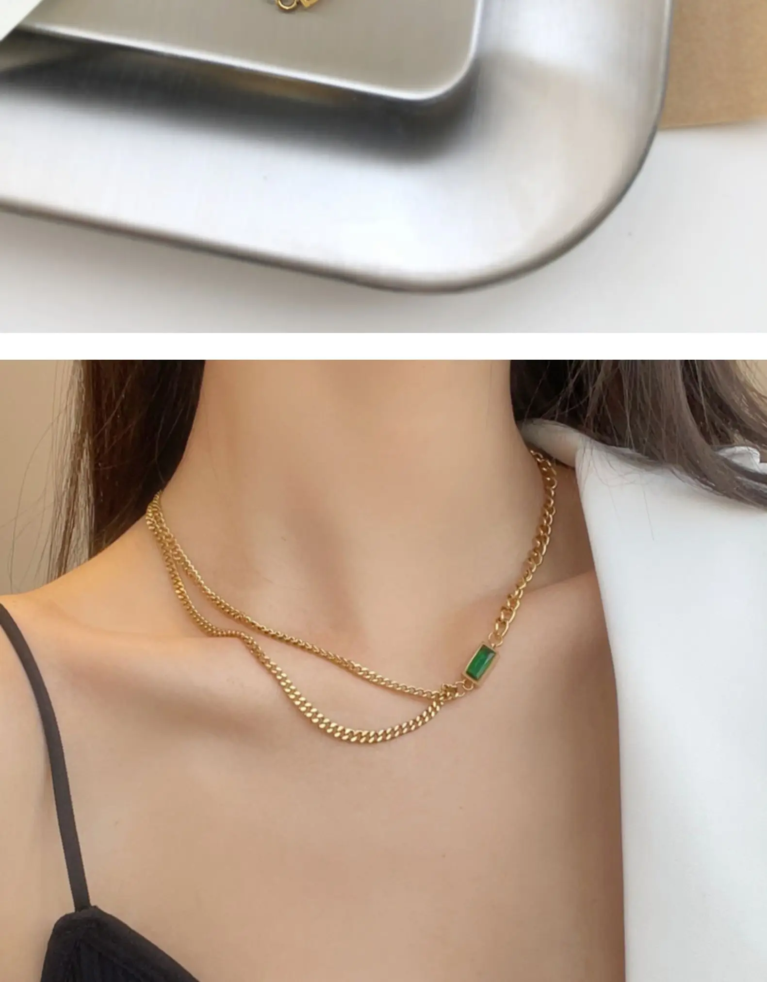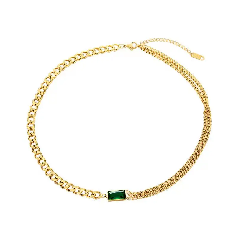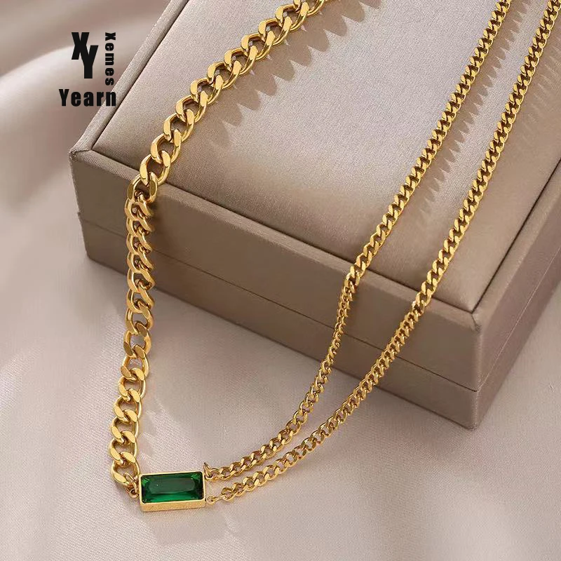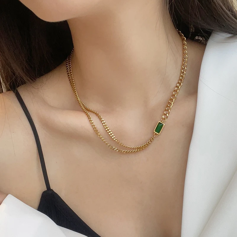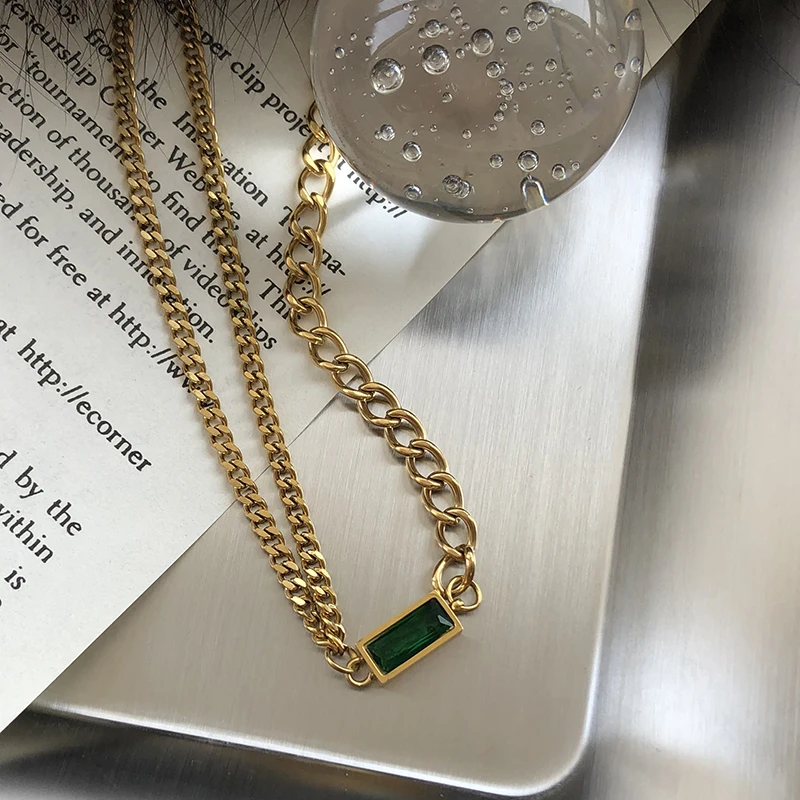 Новинка 2021, высококачественное ожерелье из нержавеющей стали с квадратной подвеской с зелеными кристаллами для женщин, корейская мода для девушек, бижутерия, сексуальная цепочка на шею