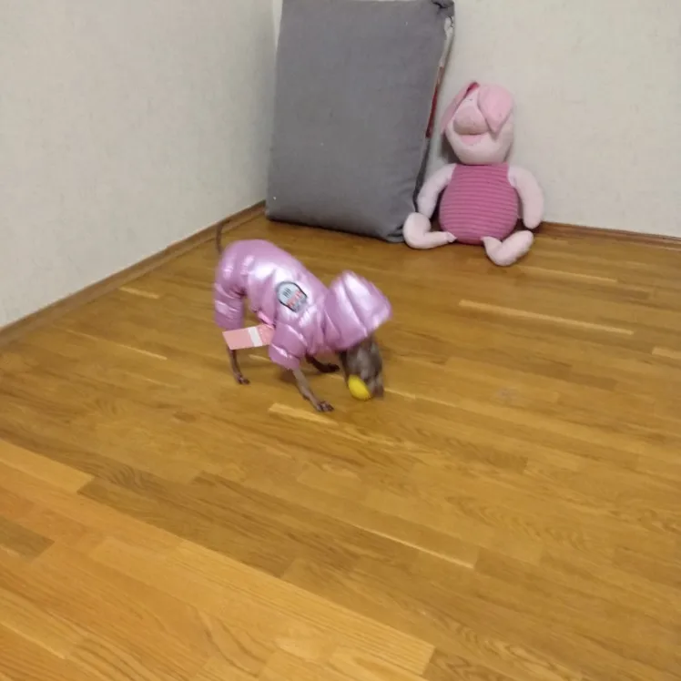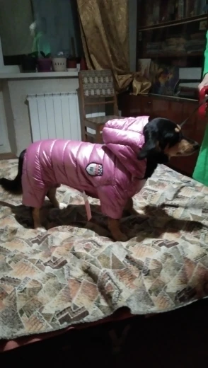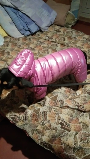 Отличный пуховик.Качество на высоте,легко одевать.Наконец-то наш чихуахуа перестал в нем дрожать на улице.Размер подошёл на 2600 кг,чуть свободновато,но мы так и хотели.