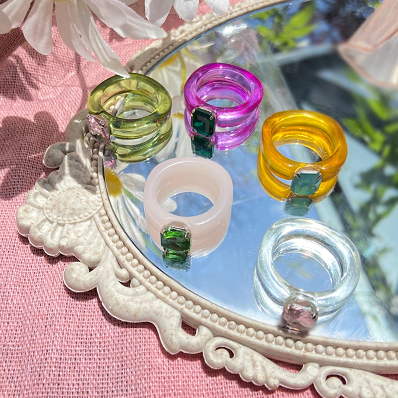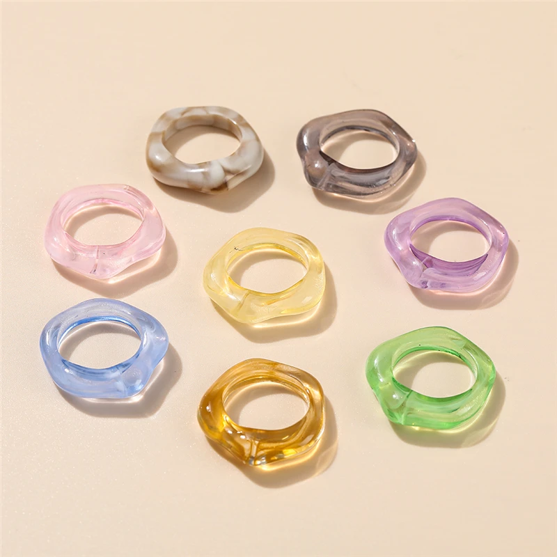 Комплект женских прозрачных колец из акриловой смолы, в богемном стиле